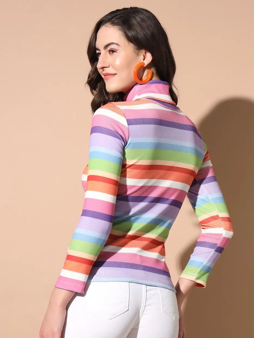 Product Name: Multicolour Striped Turtleneck Top for Women