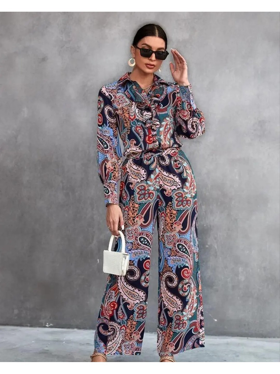 Product Name: Navy Blue Ethnic Printed Shirt Co-ord Set for Women