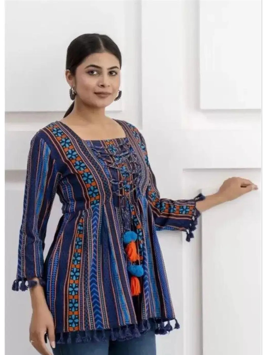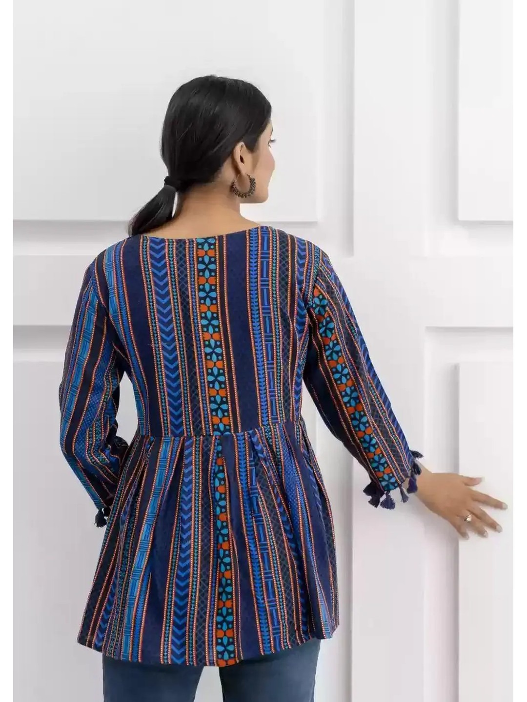 Product Name: Navy Blue Printed Ethnic Peplum Top for Women