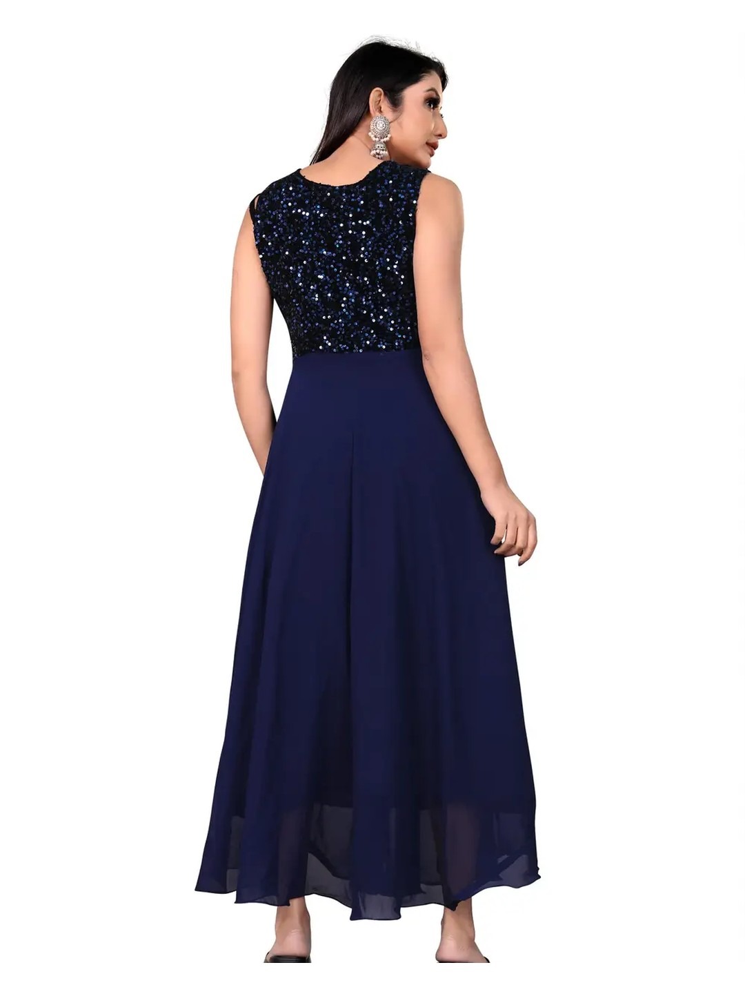 Product Name: Navy Blue Sleeveless Sequin Maxi Gown for Women