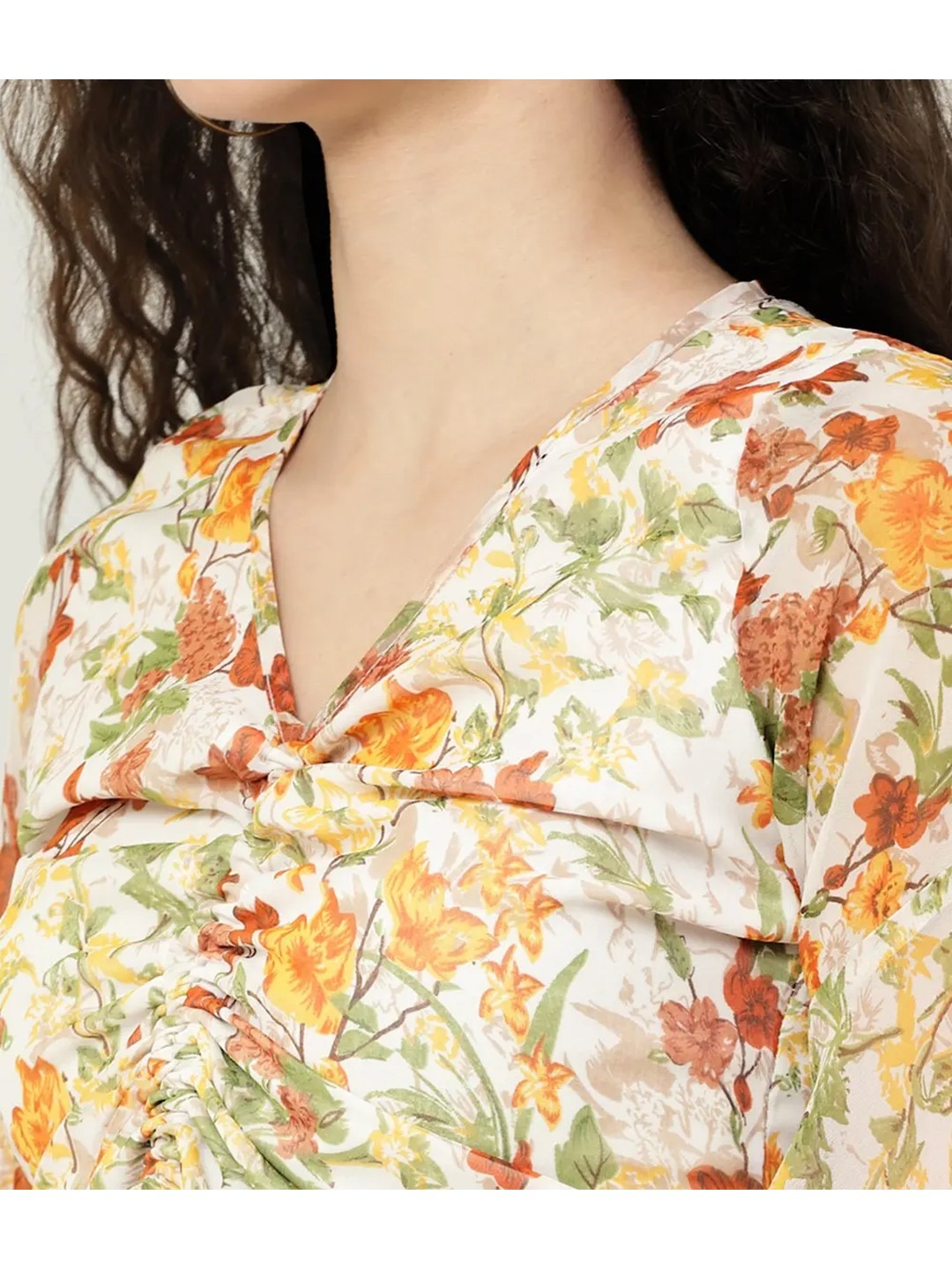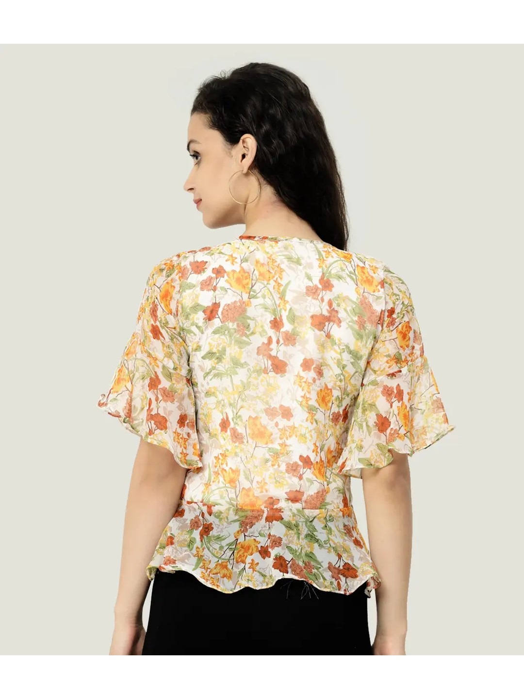 Product Name: Orange Floral Front Tie-Up Top for Women
