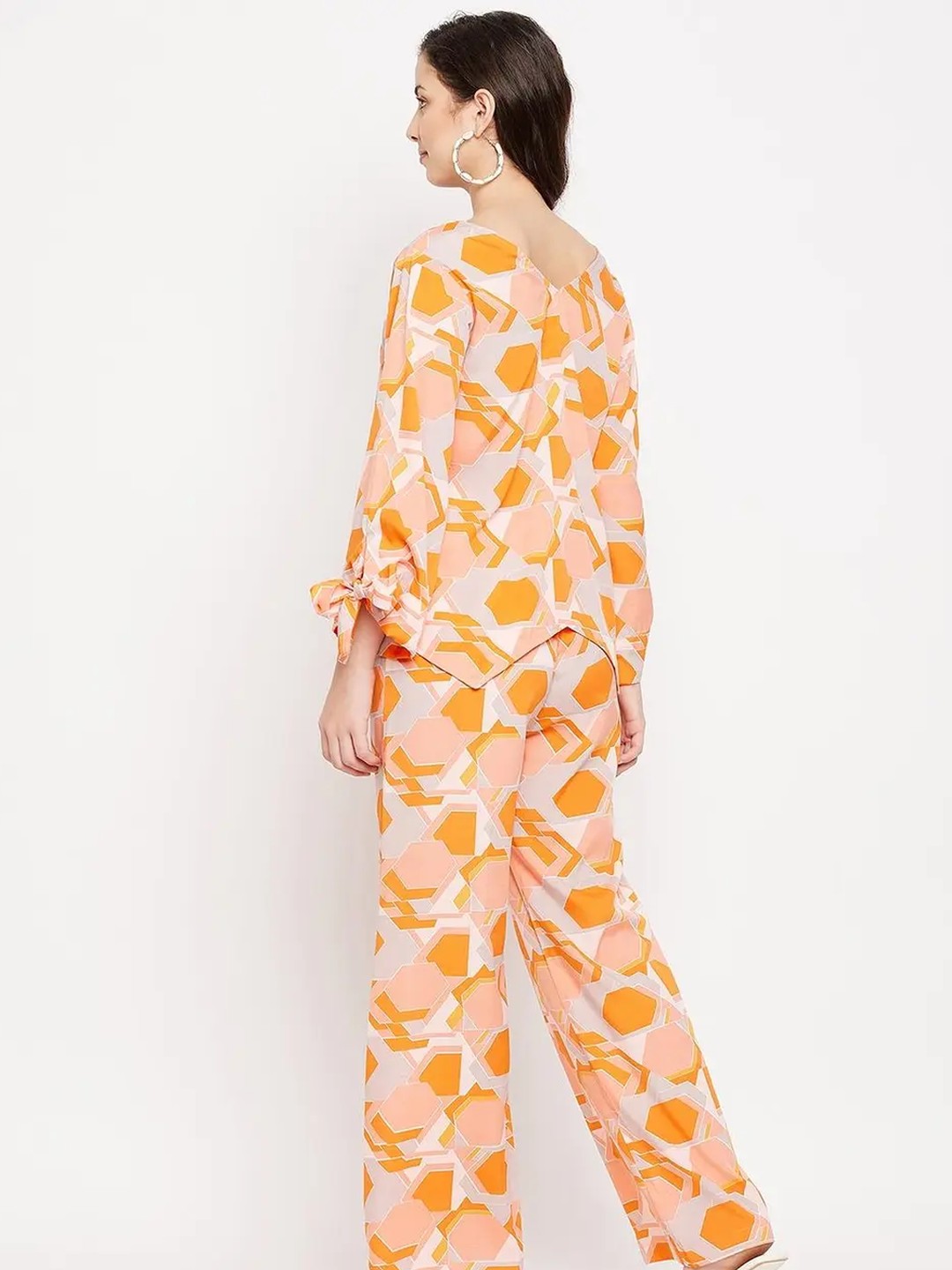 Product Name: Orange Printed Tunic Co-ord Set for Women