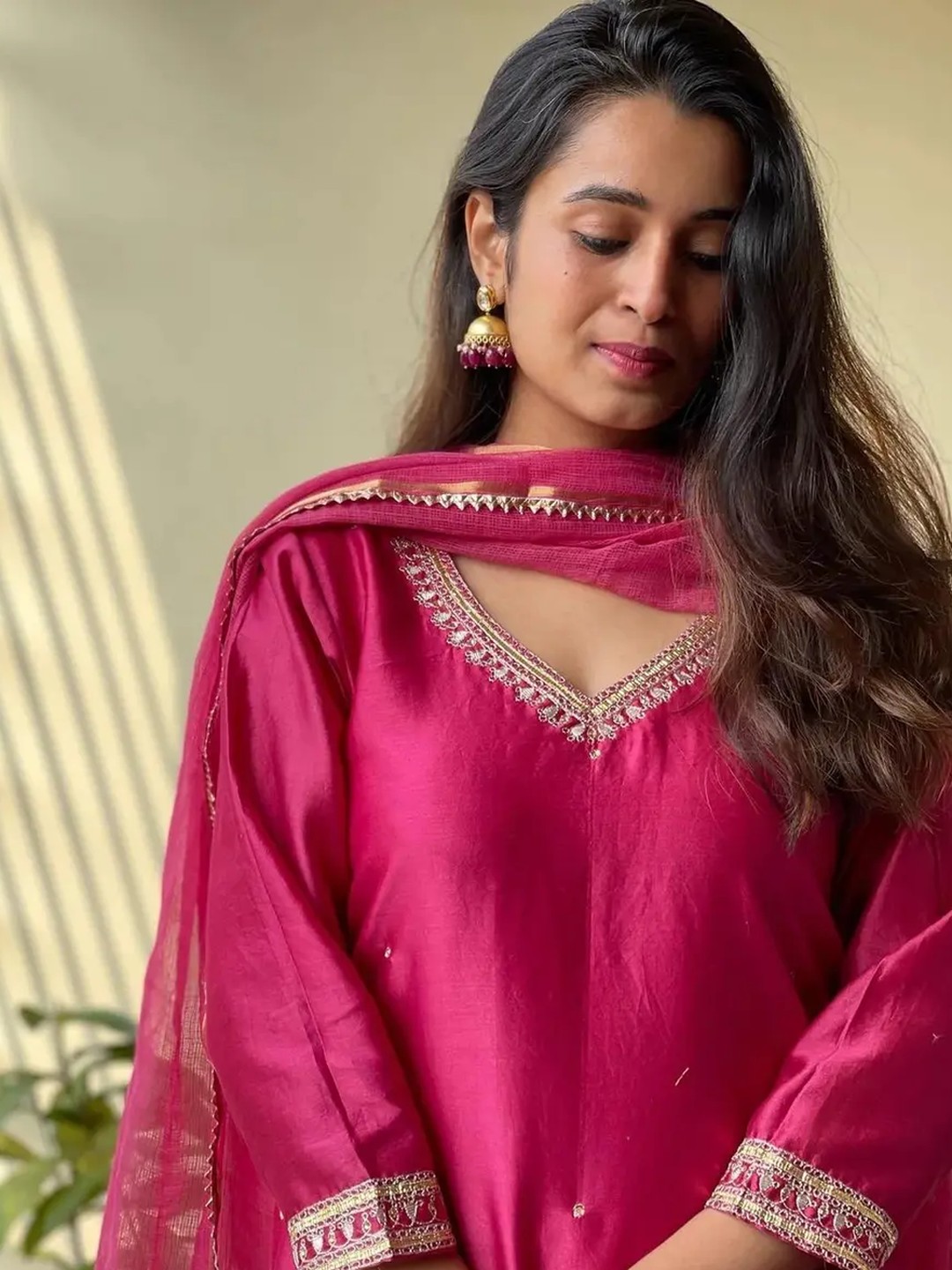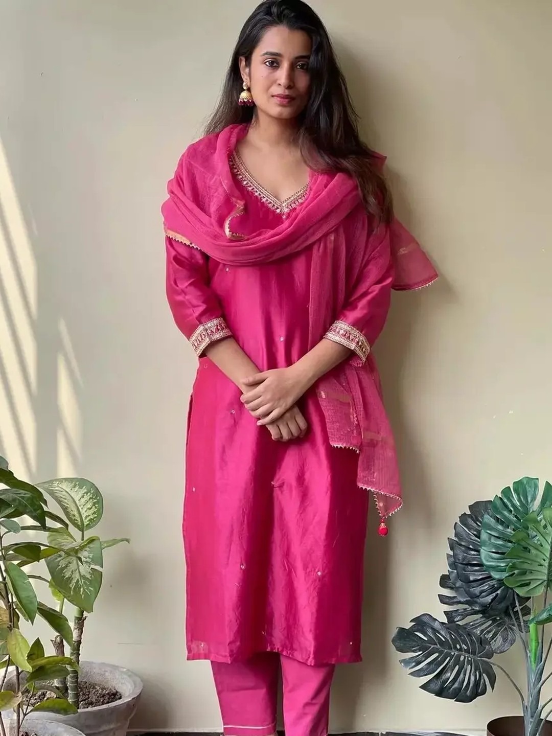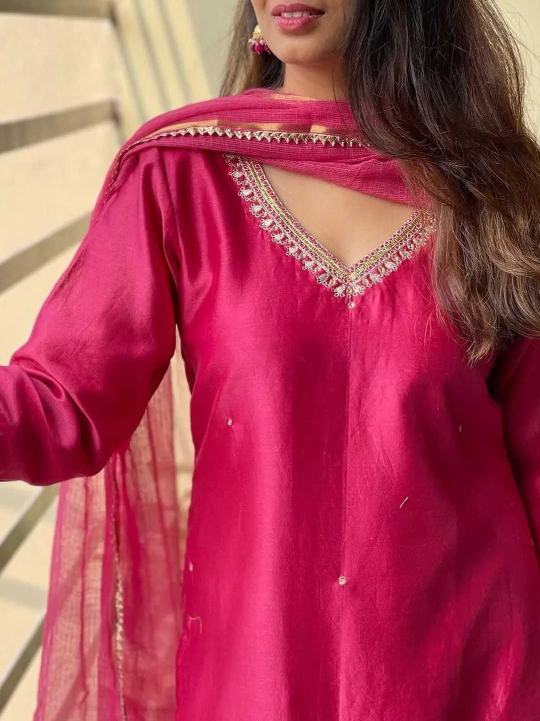 Product Name: Pink Embellished V-neck Kurta Set for Women