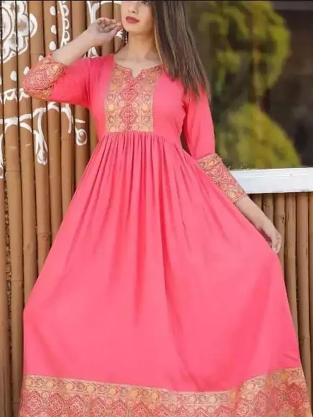 Pink Ethnic Printed Anarkali Kurta for Women that has intricate prints and a flare fit. This ethnic printed anarkali kurta can be styled with delicate accessories for a graceful charm.