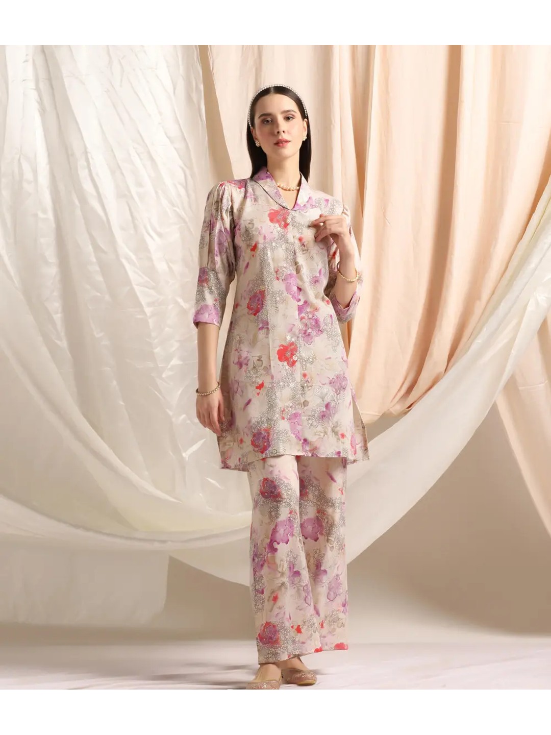 Product Name: Pink Floral Kurta Co-ord Set for Women