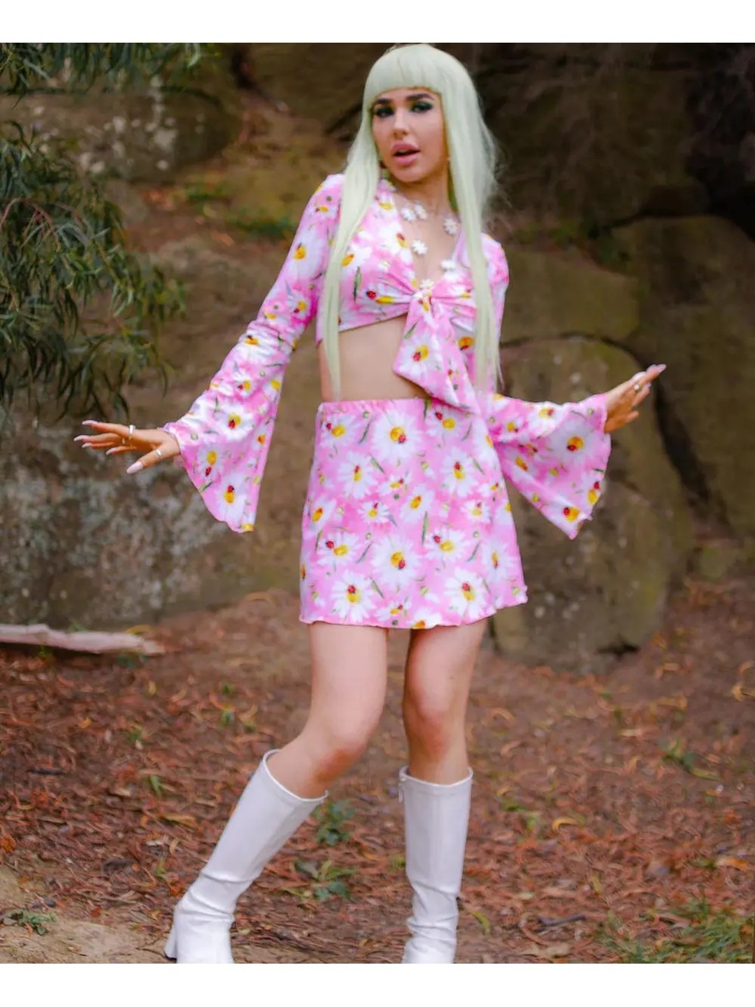 Product Name: Pink Floral Mini Skirt Co-ord Set for Women