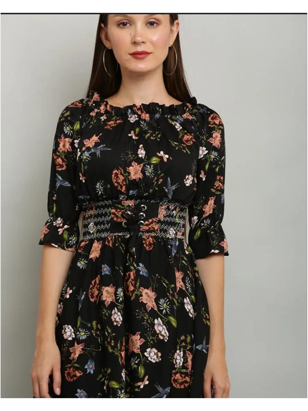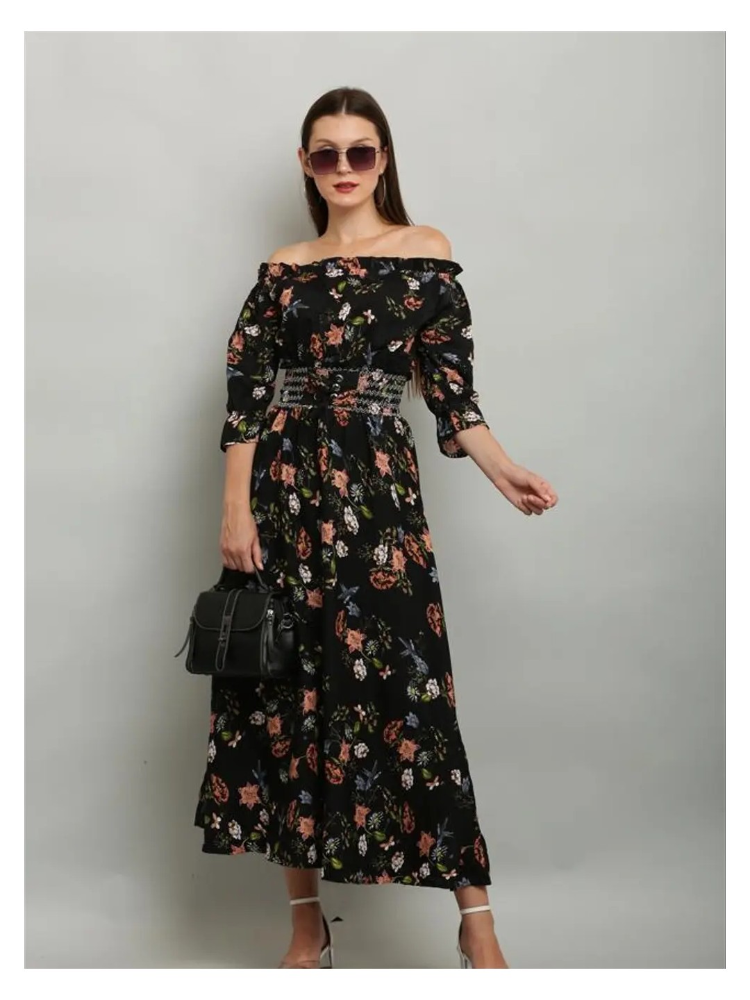 Product Name: Pink Floral Off-Shoulder A-line Maxi Dress for Women