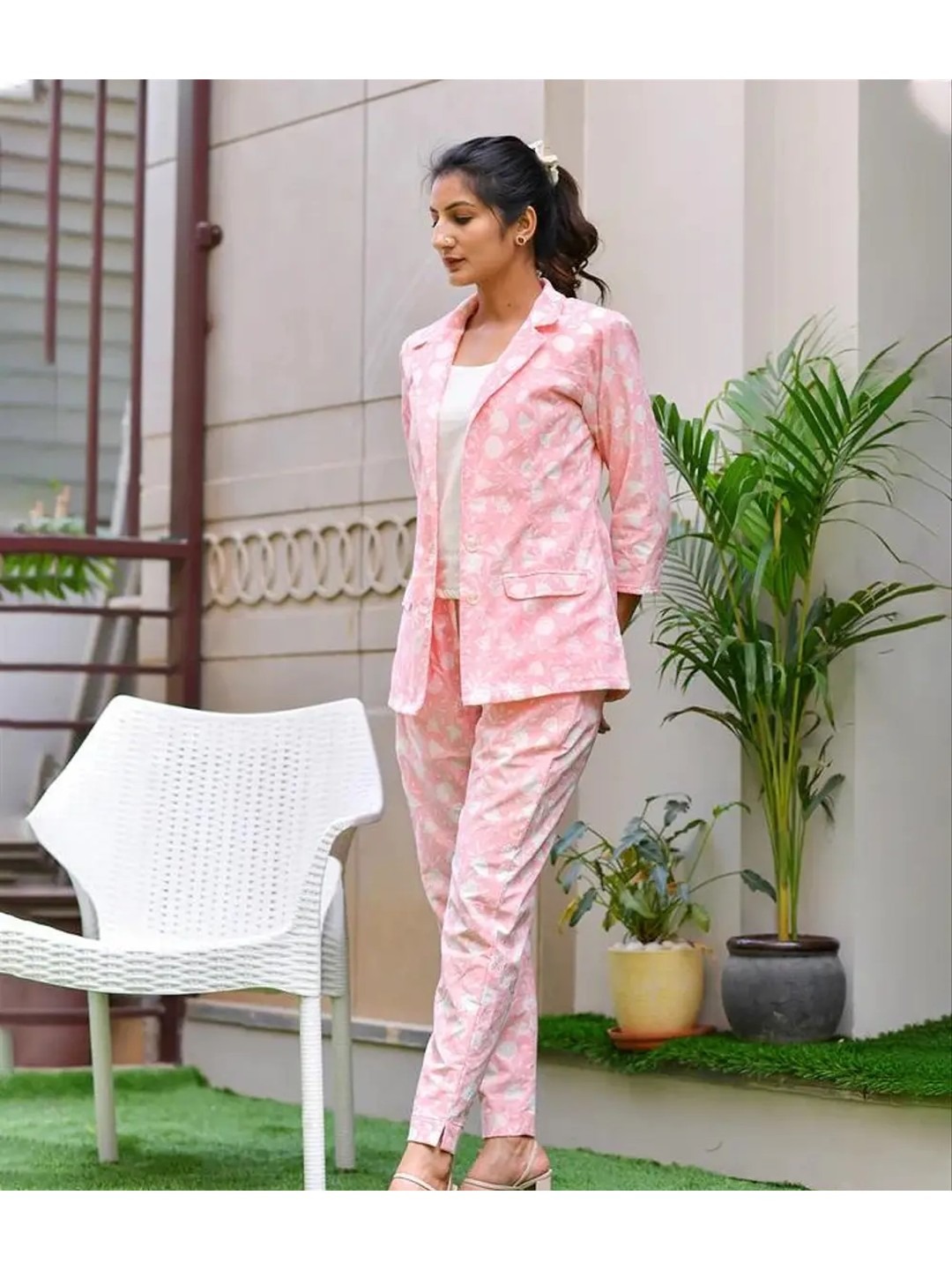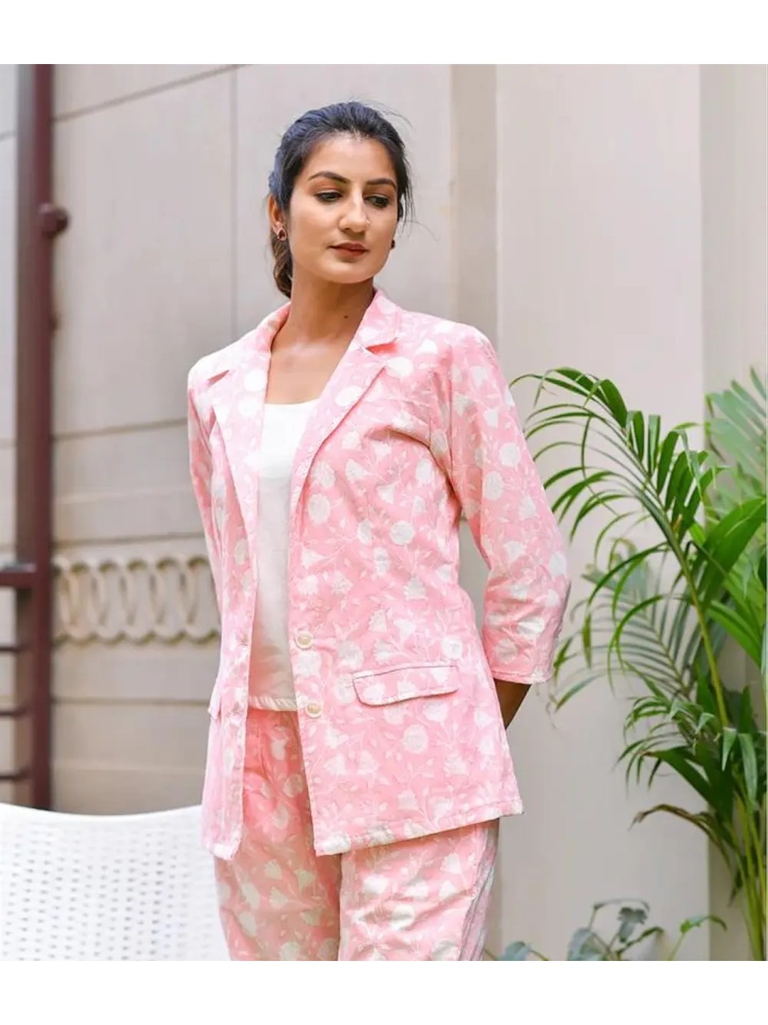 Product Name: Pink Printed Blazer and Pants Co-ord Set for Women