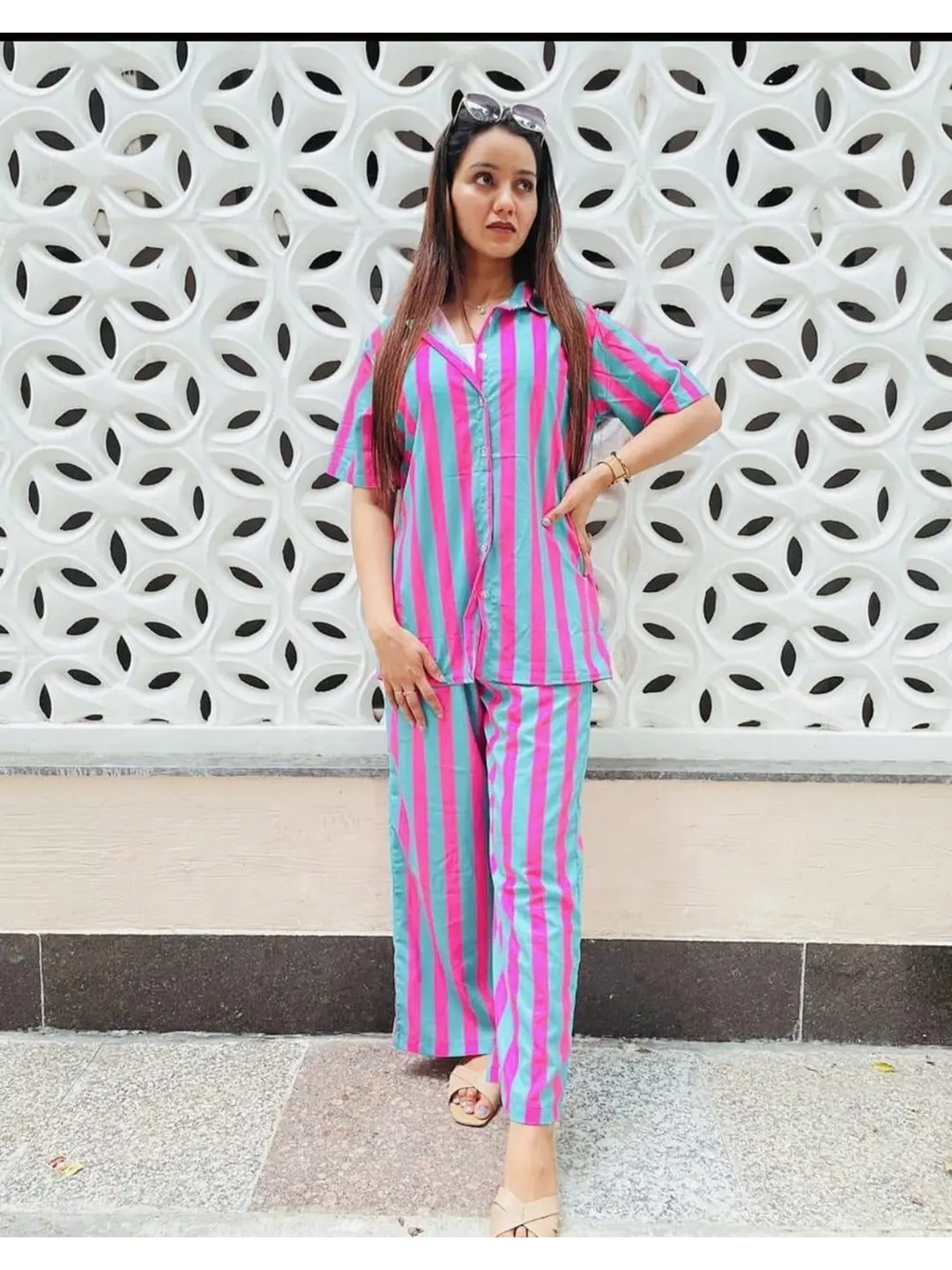 Product Name: Pink Striped Shirt Co-ord Set for Women