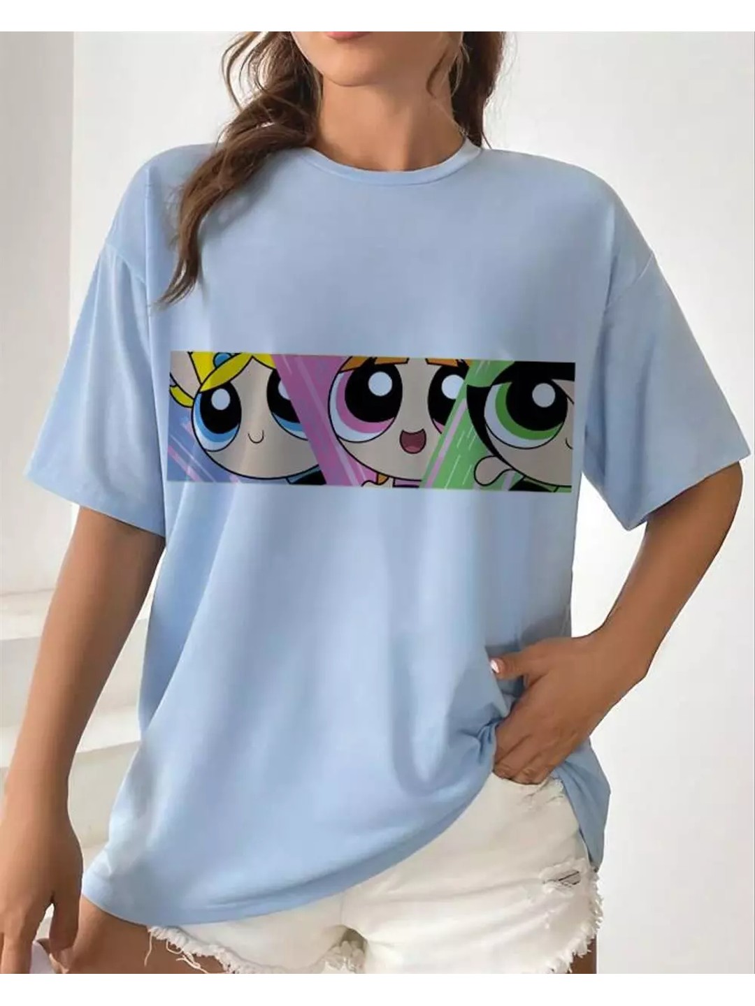 Product Name: Powerpuff Girls Printed Oversized T-shirt for Women
