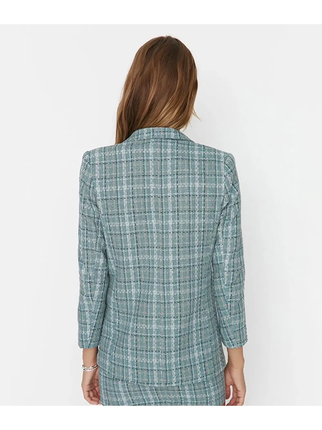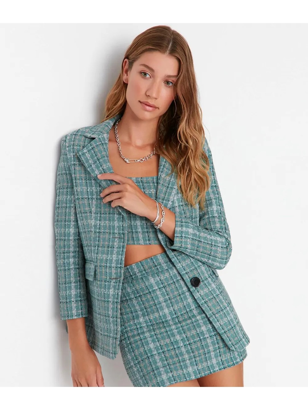 Product Name: Printed Silk Blend Green Co-ord Set with Blazer for Women