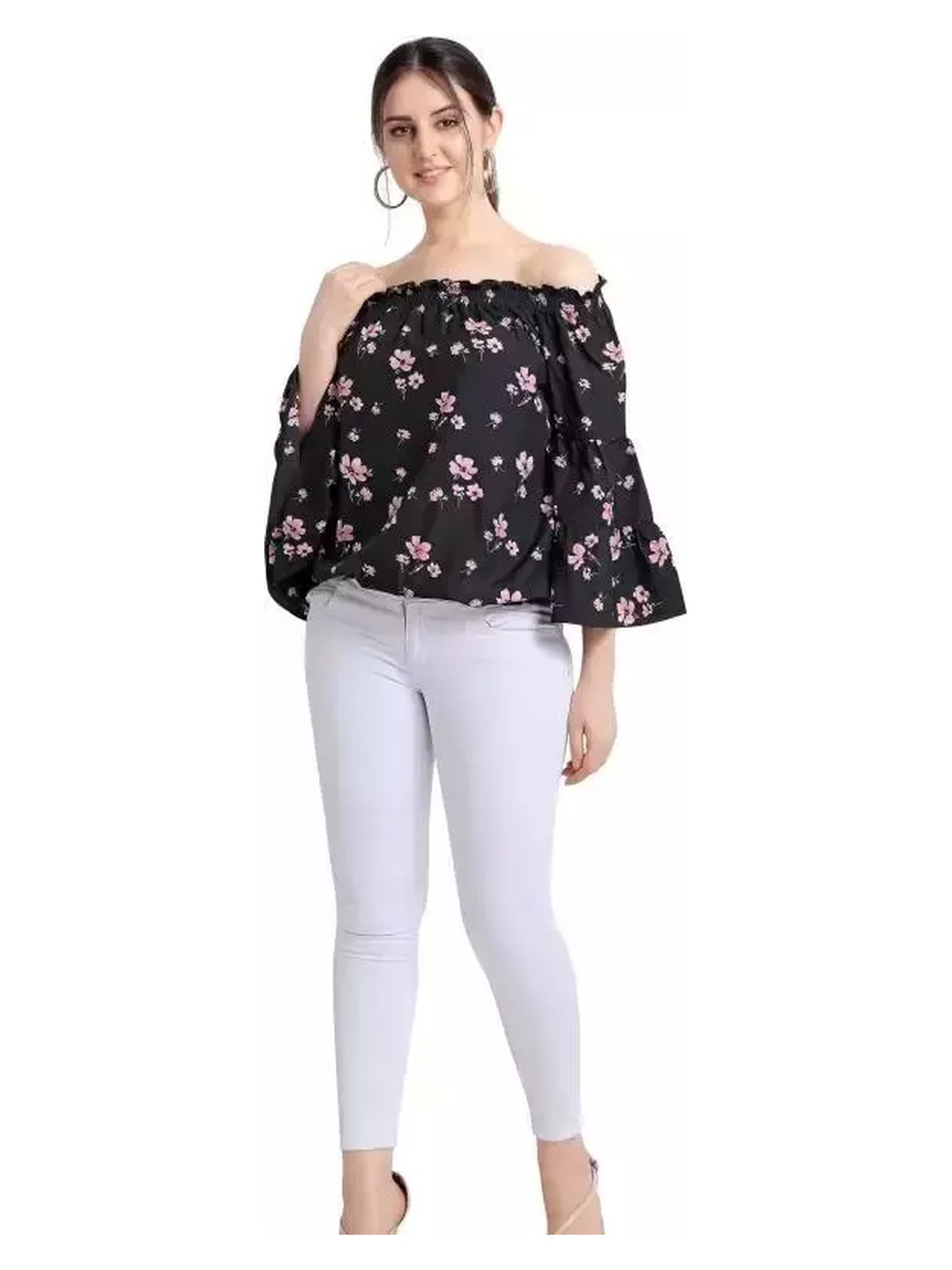 Printed off-shoulder top that comes with oversized fit, vibrant prints and a regular length that can be paired with any bottoms for a flattering look. It’s a perfect choice for hot summer days and is light, breathable and easy to wash. Style this top with hoop earrings, flats and a cute sling bag to complete the look.