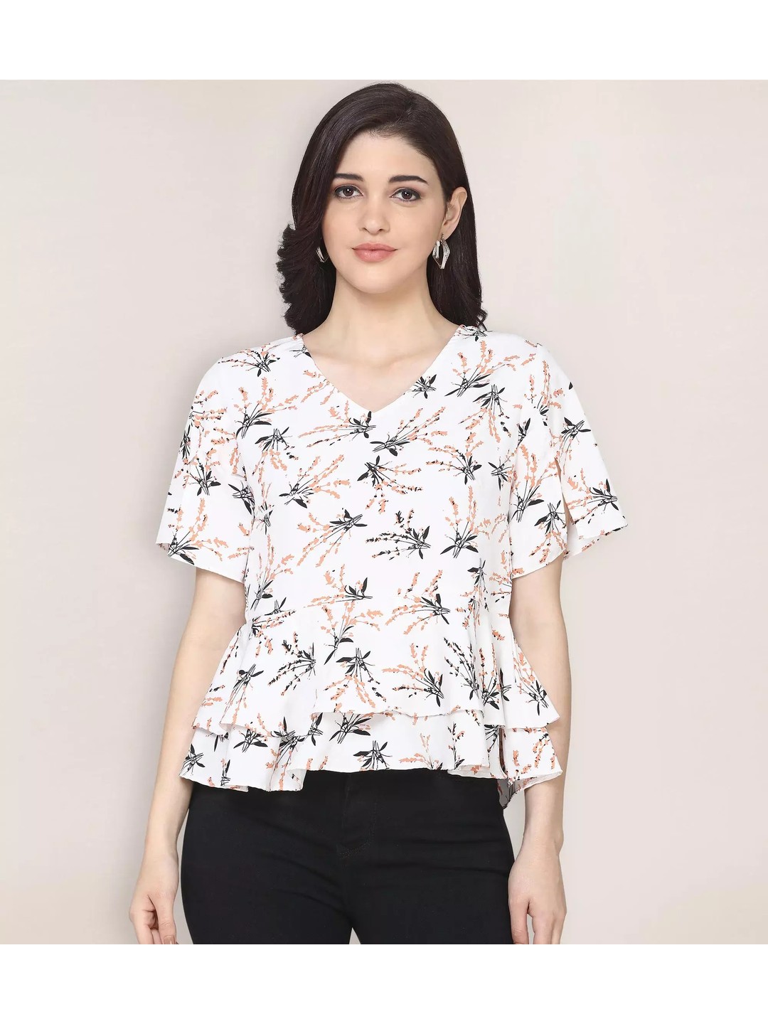 Product Name: Printed Peplum Top with Ruffles for Women