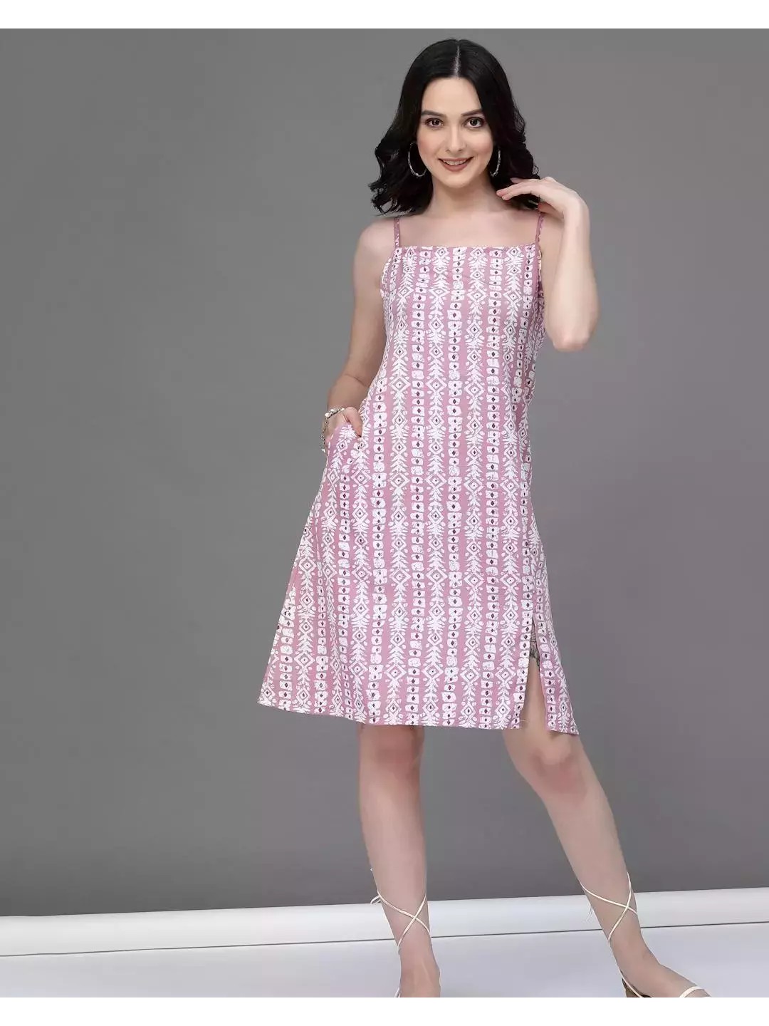Product Name: Printed Sleeveless Mini Slit Dress for Women