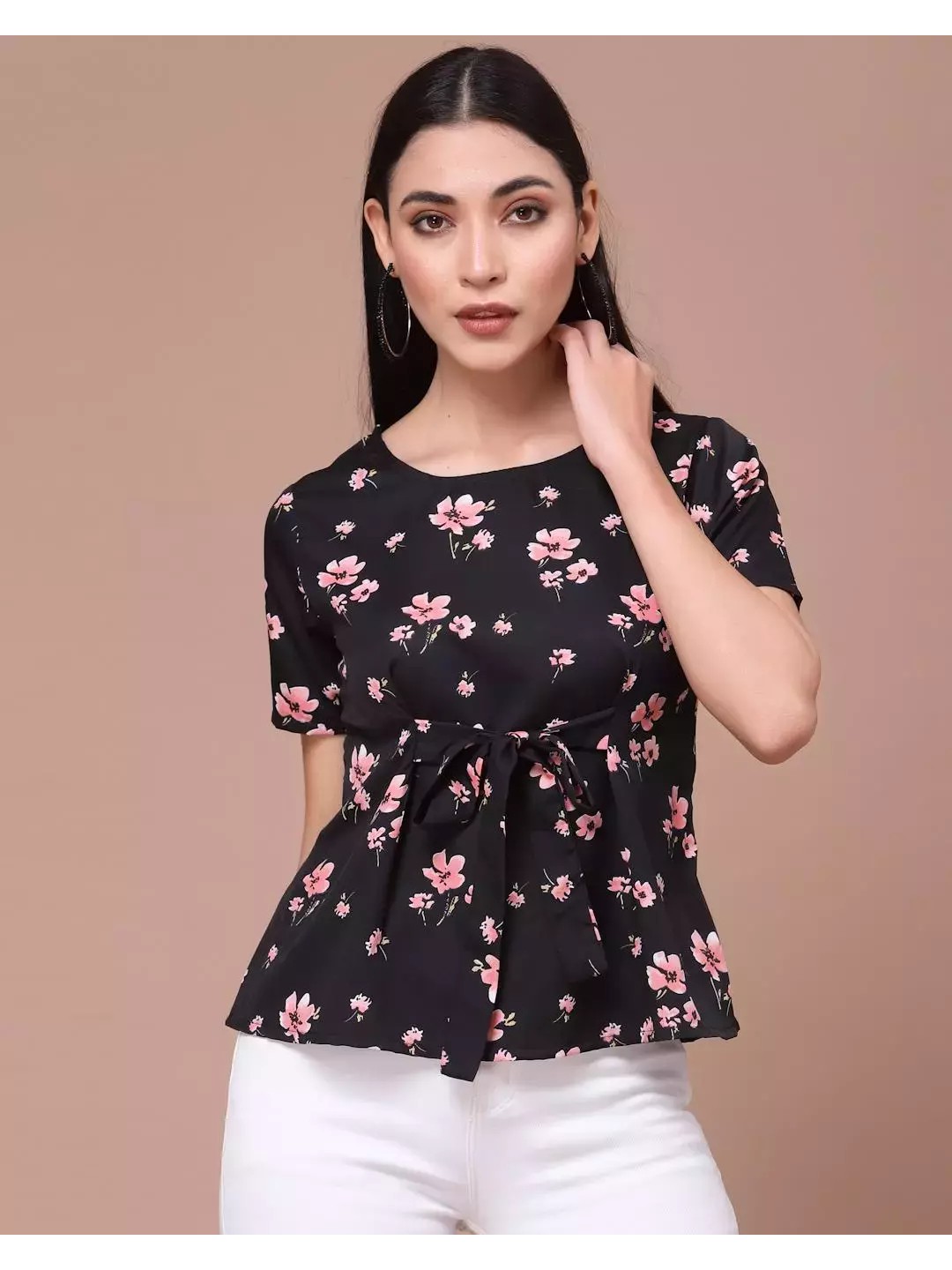 Printed peplum top made with crepe fabric that is super light and comfy, perfect for summers. This peplum top comes with a v-neck, extended sleeves, an apt length and a fit that gently traces your curves into an attractive silhouette for a feminine and elegant look.