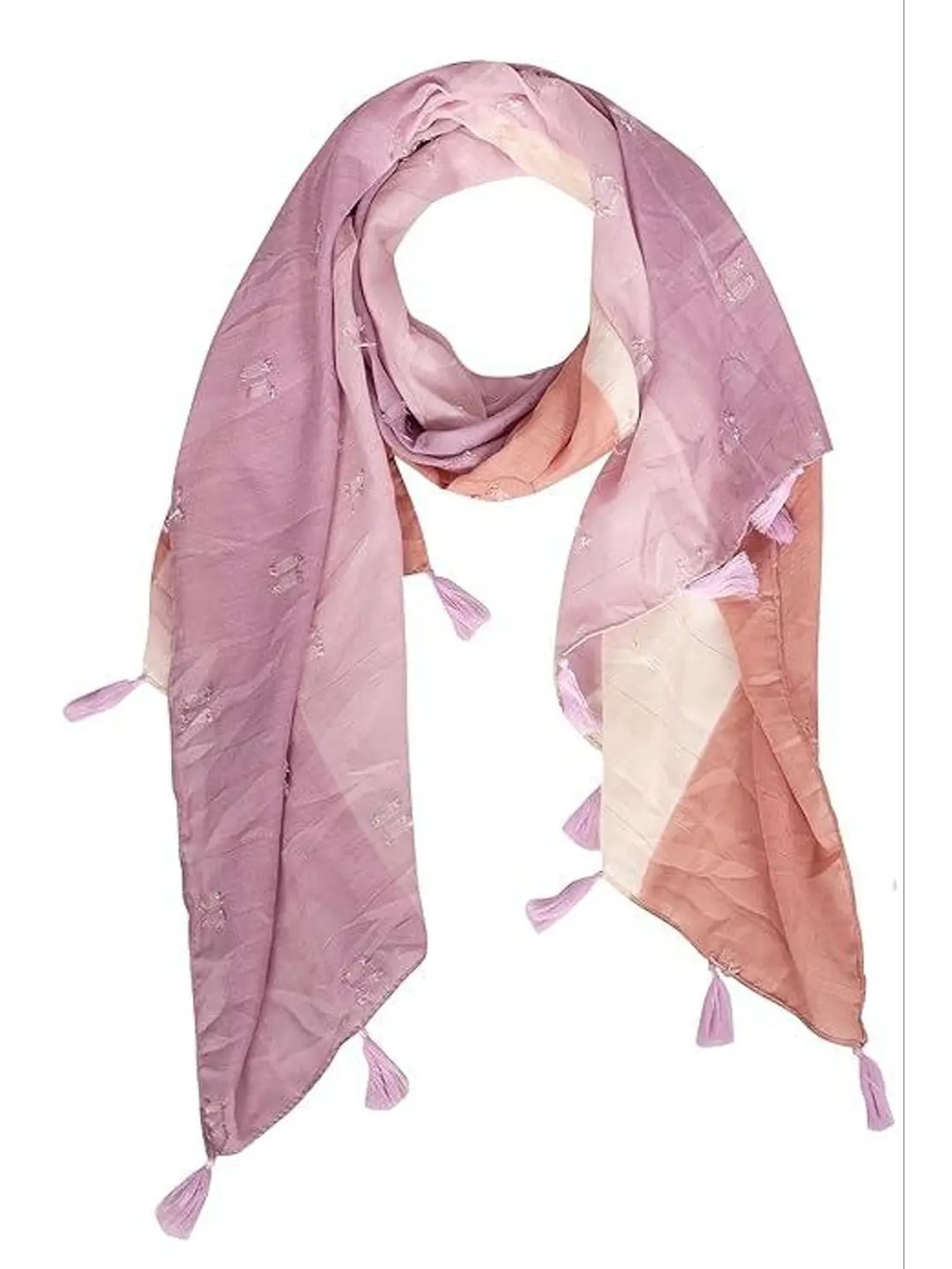 Purple Colour-Blocked Cotton Scarf for Women that has vibrant colours, apt length, detailed work at the hem and a soft feel. Made with cotton fabric, it is durable, super soft and easy to style for an enhanced look.