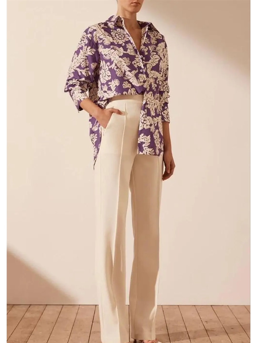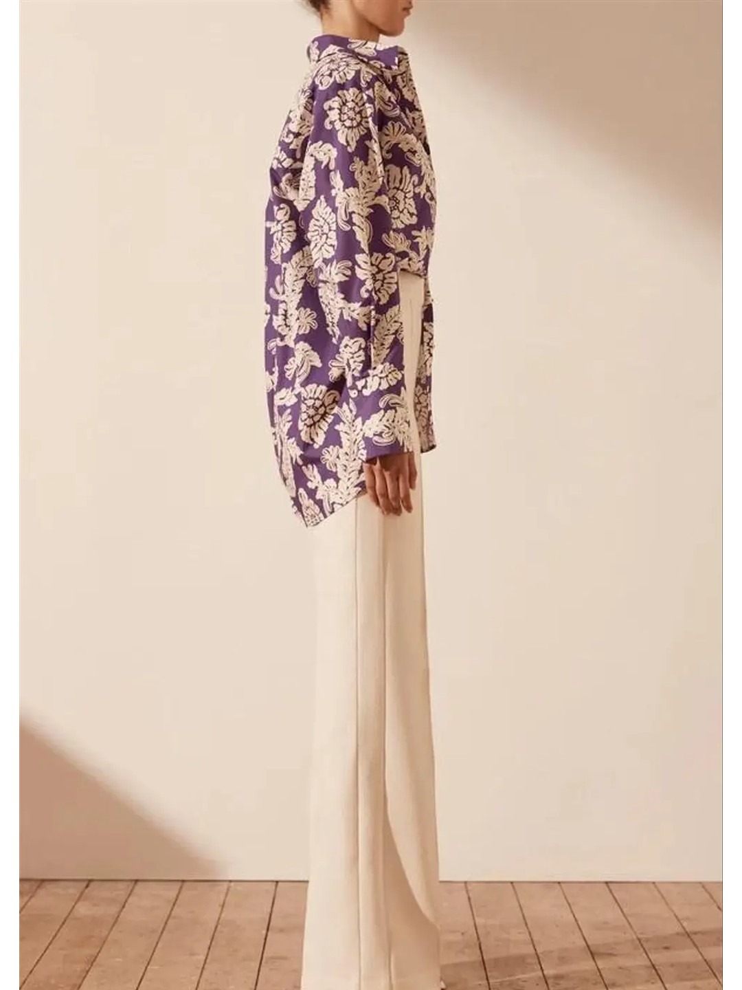Product Name: Purple Ethnic Oversized Shirt for Women