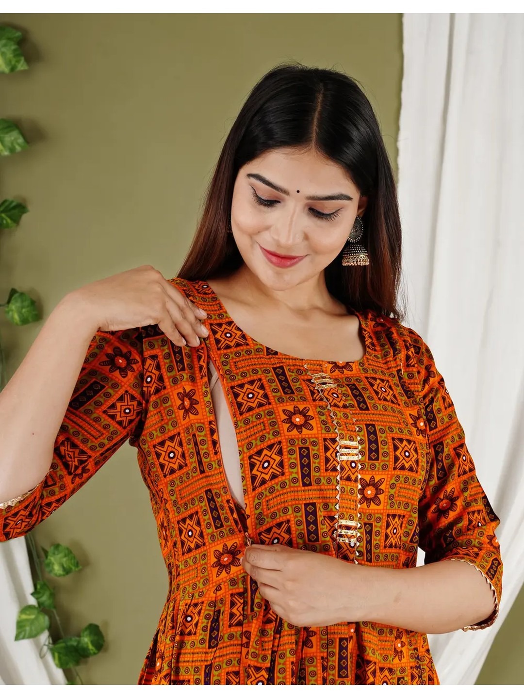 Product Name: Red Ethnic Motifs Printed Maternity Feeding Anarkali Kurti for Women