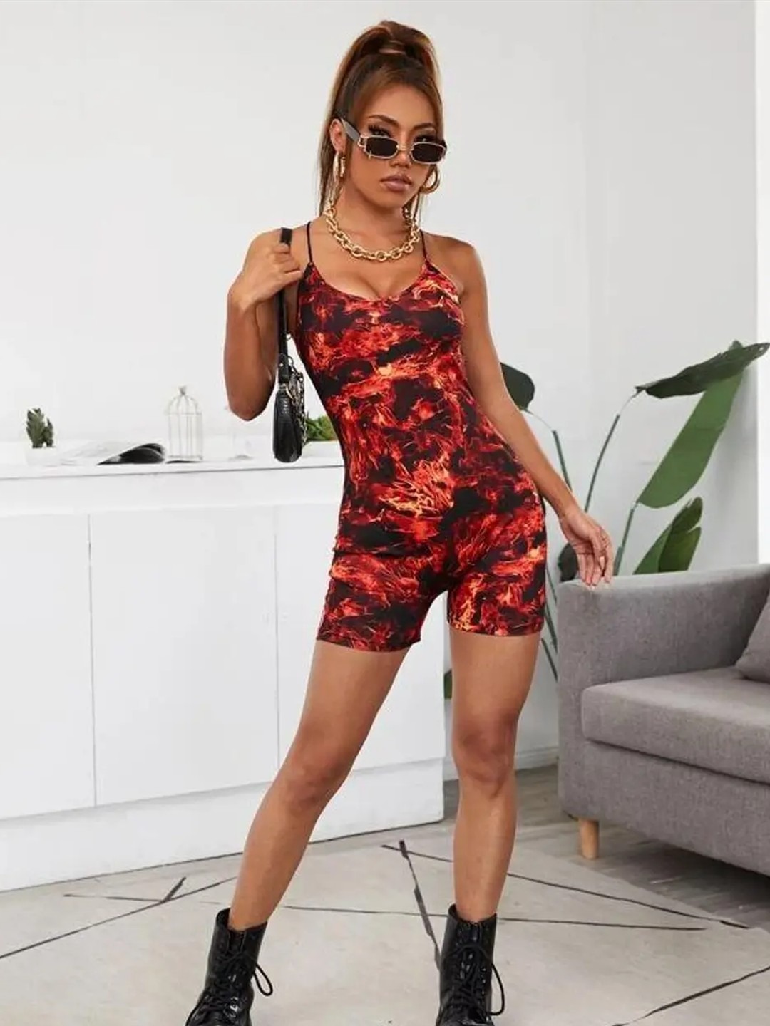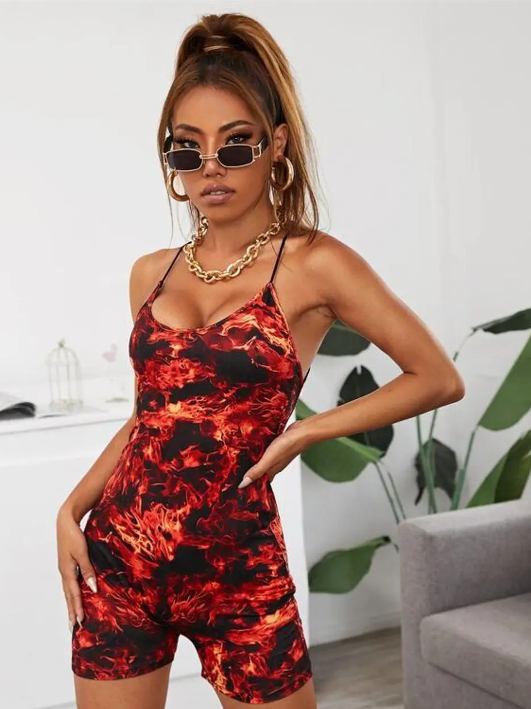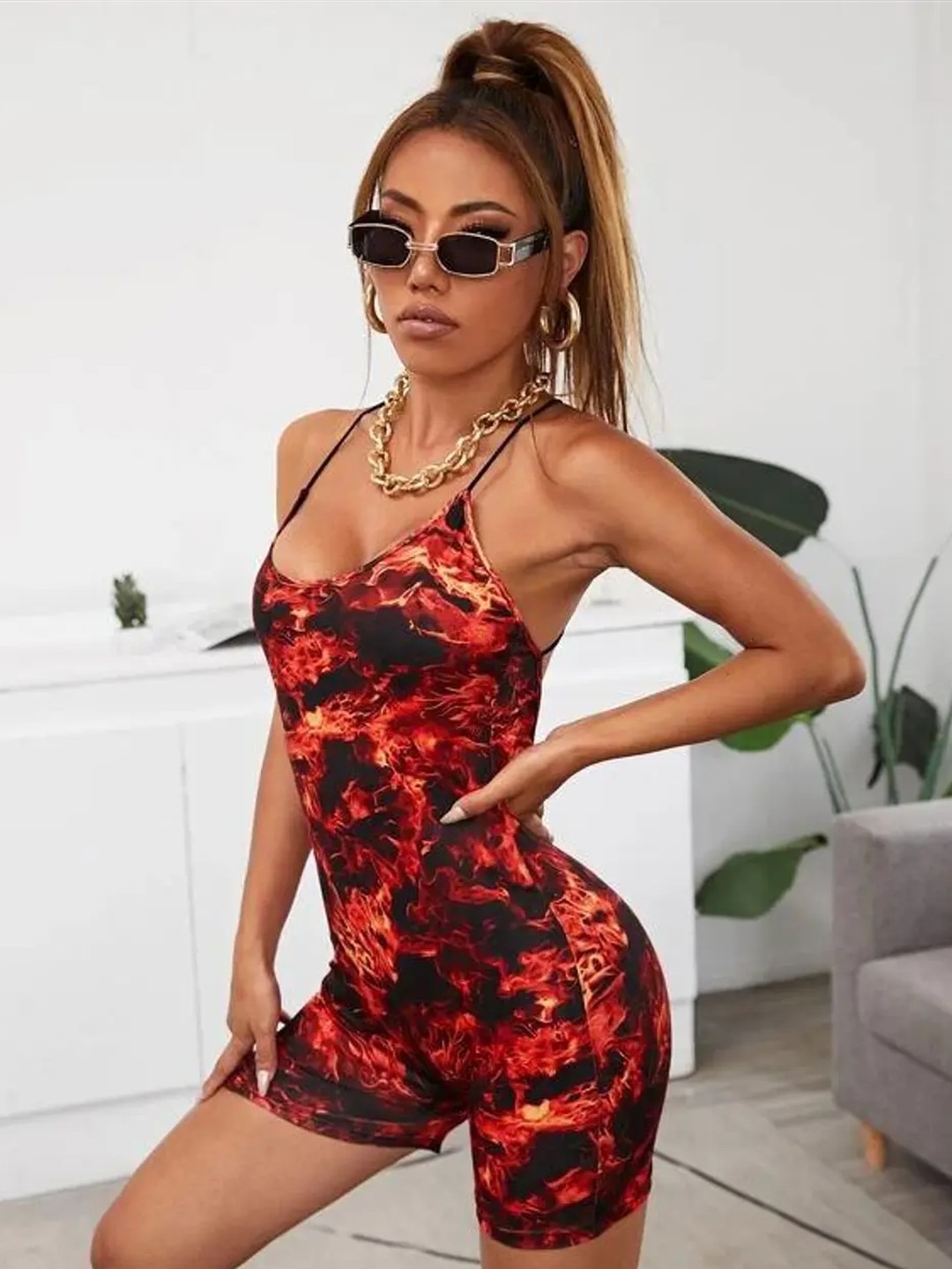 Product Name: Red Fire Printed Bodycon Playsuit for Women
