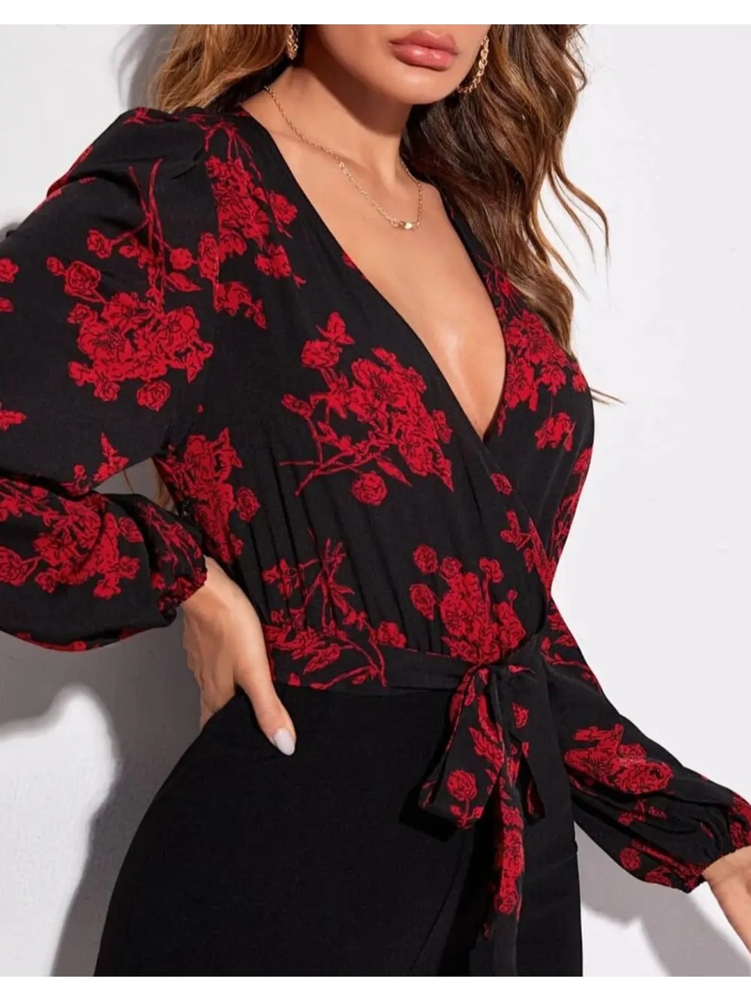 Product Name: Red Floral Tie-Up Jumpsuit for Women