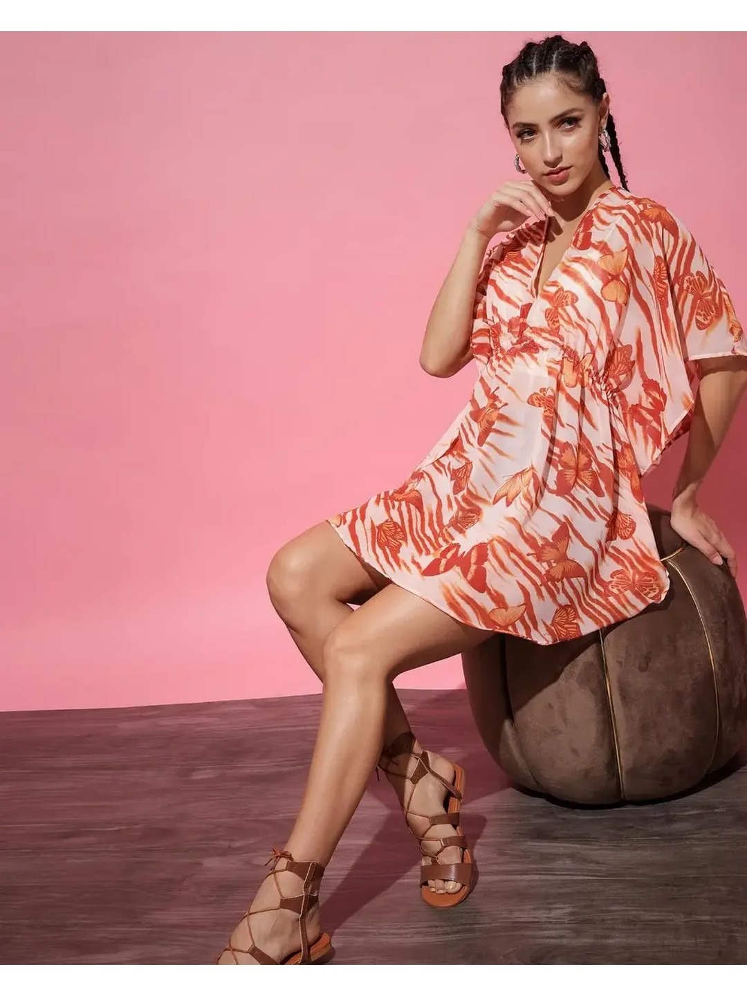 Product Name: Red Printed Mini Kaftan Dress for Women