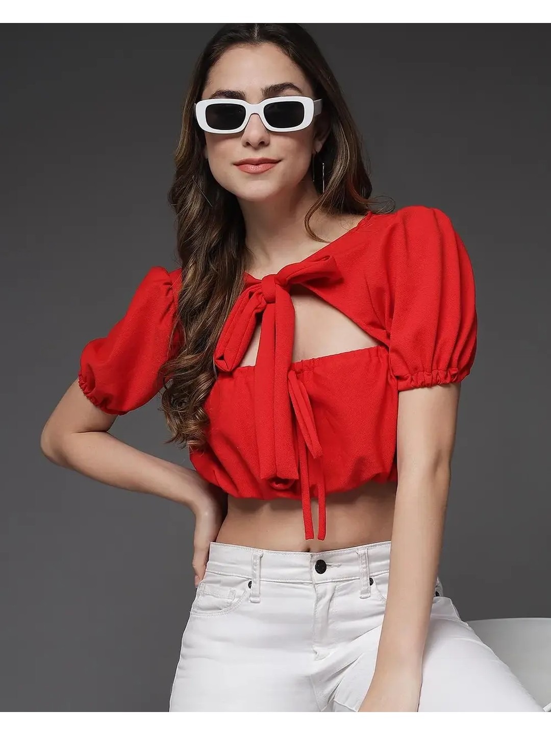 Product Name: Red Tie-up Crop Top for Women