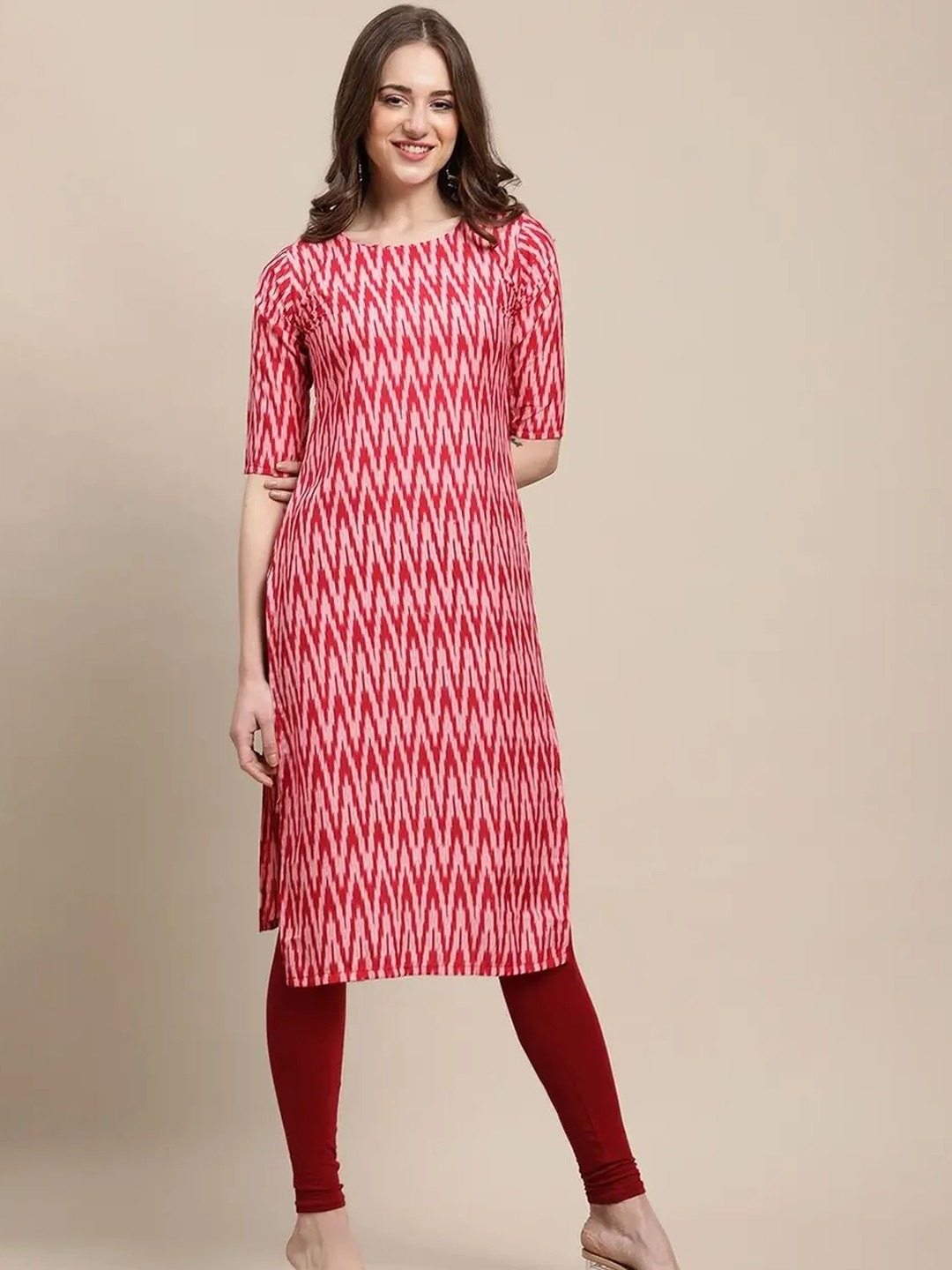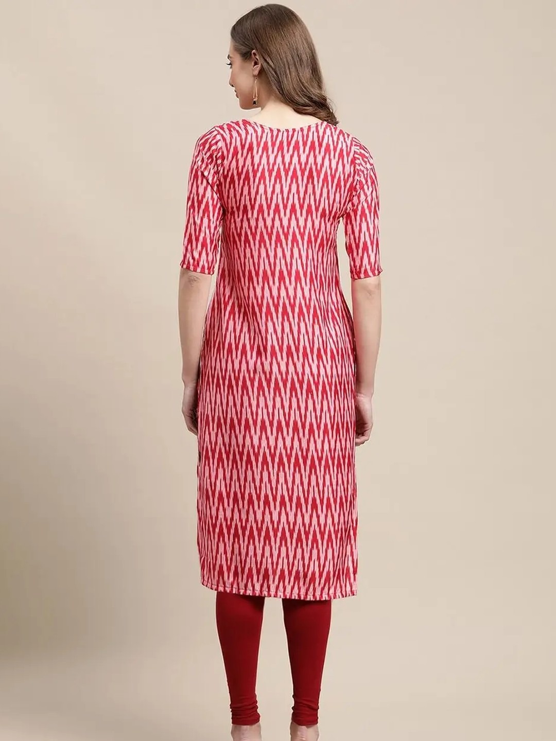 Product Name: Red Zig Zag Printed Straight Kurta for Women