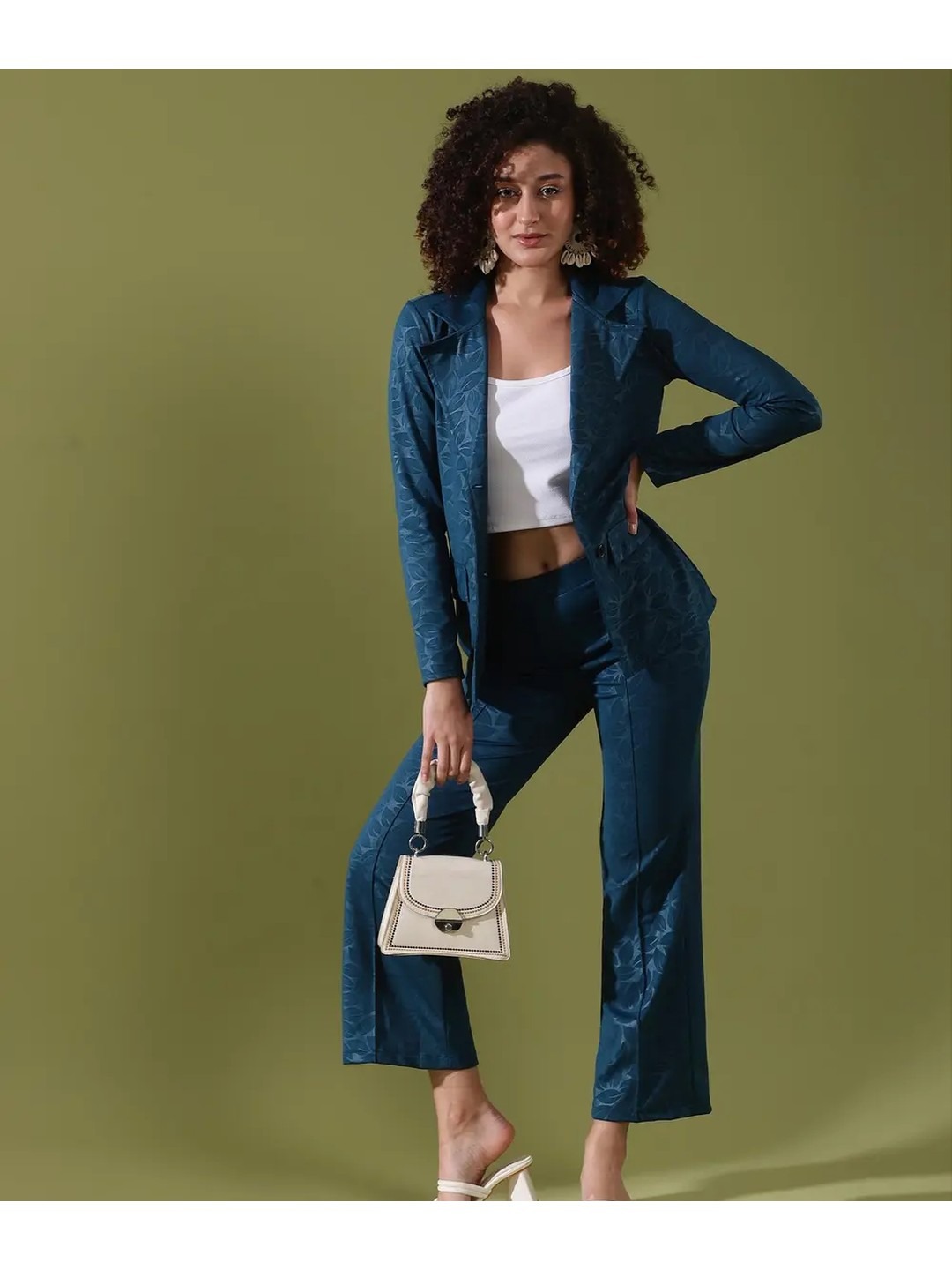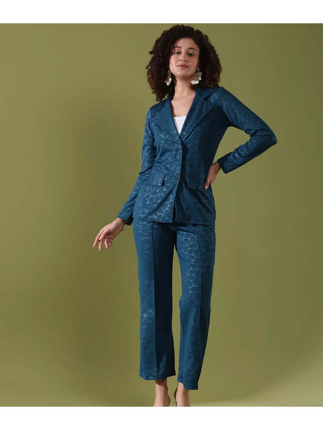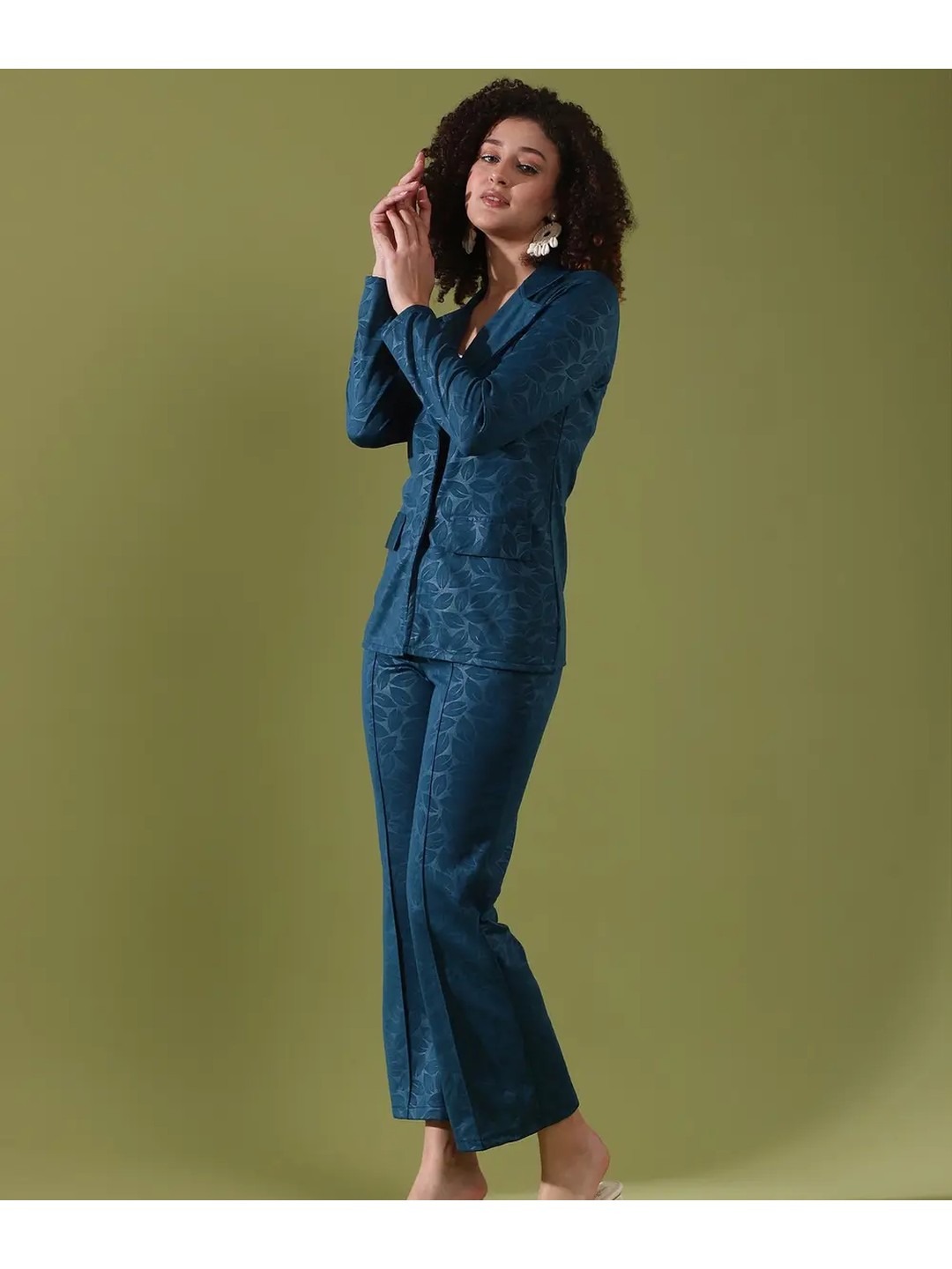 Product Name: Selvia Blue Printed Blazer Co-ord Set for Women