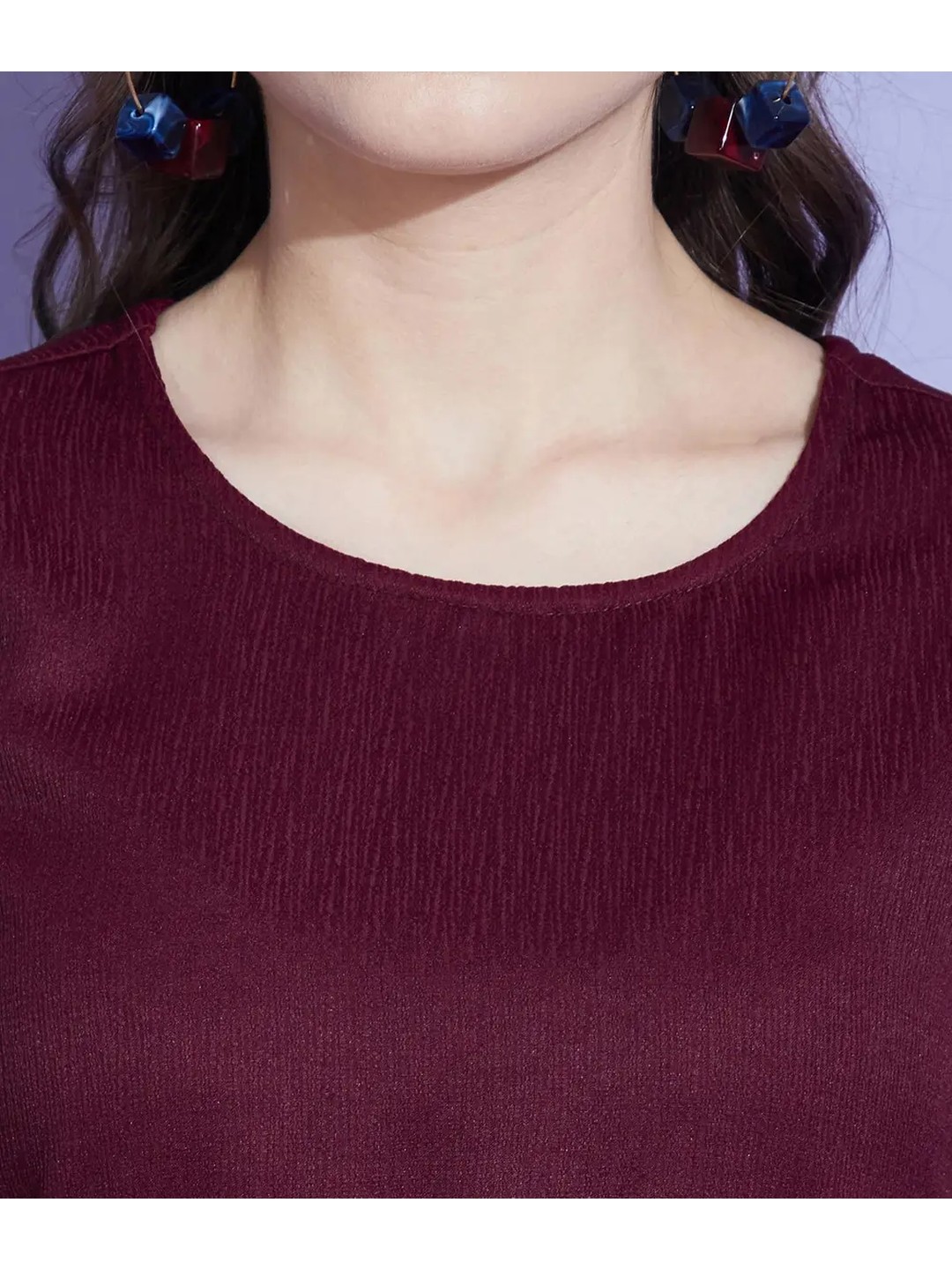 Product Name: Selvia Burgundy Ruffle Peplum Top for Women