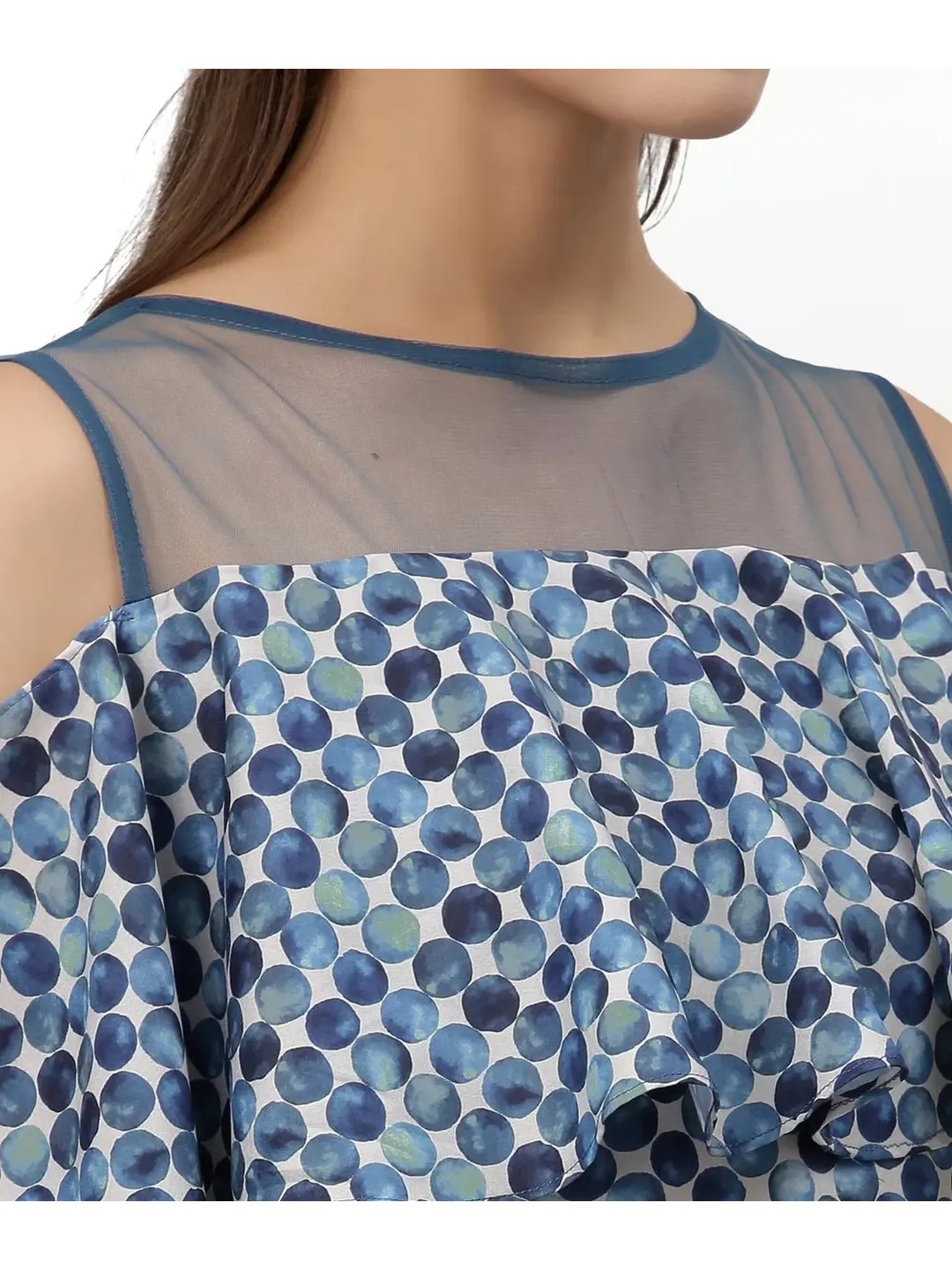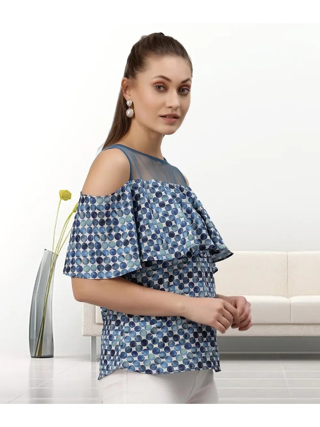 Product Name: Selvia Checked Blue Off-Shoulder Ruffle Top for Women