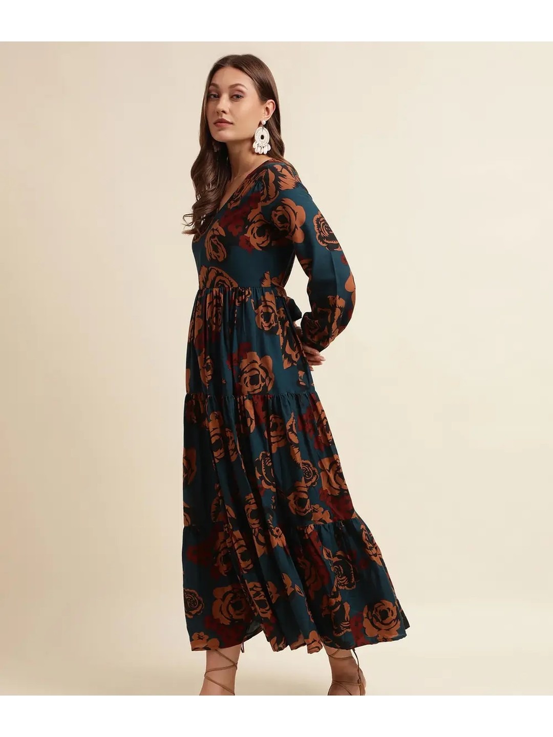 Product Name: Selvia Floral Teal Tiered Maxi Dress for Women