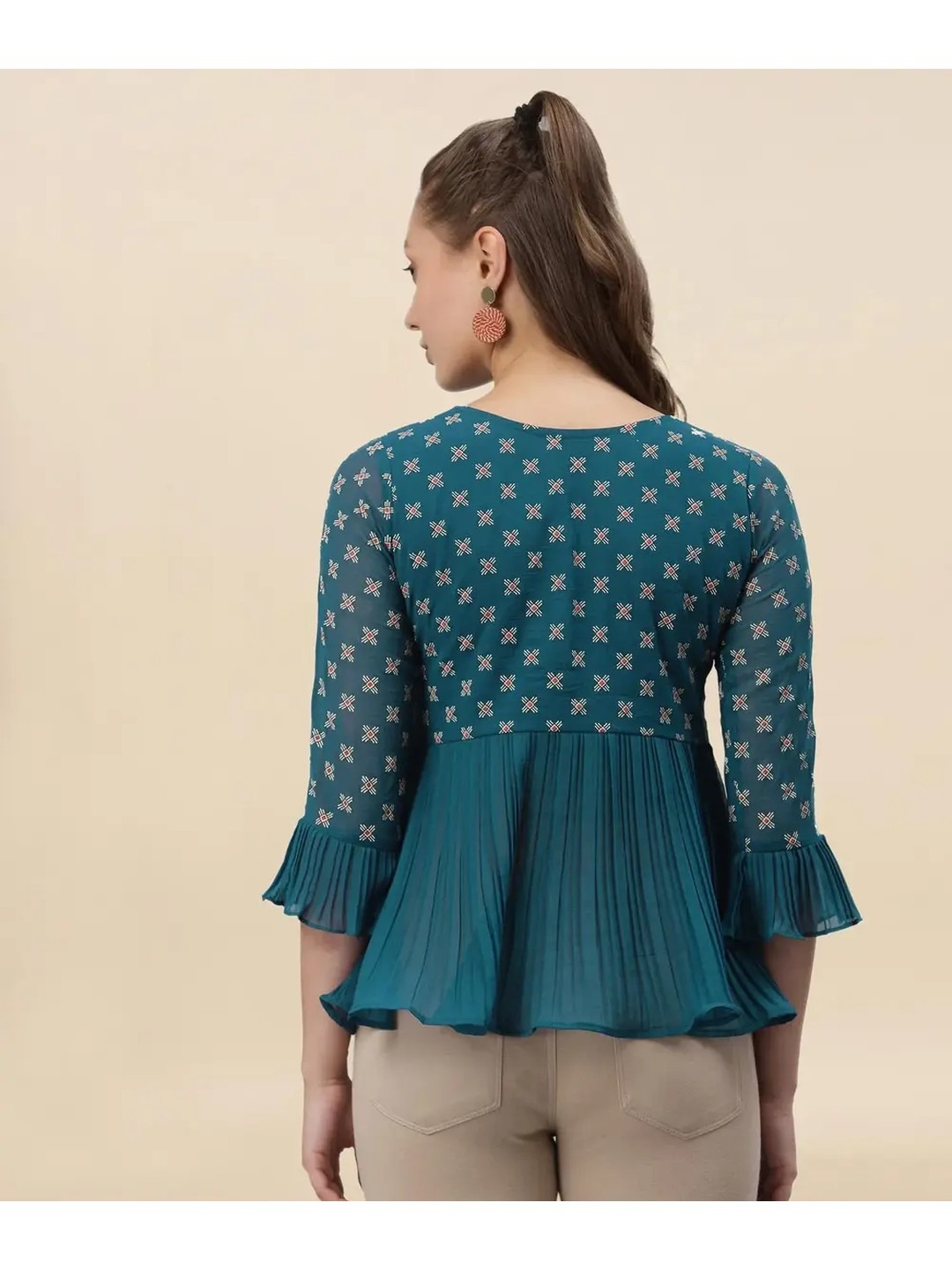 Product Name: Selvia Printed Teal Peplum Top for Women