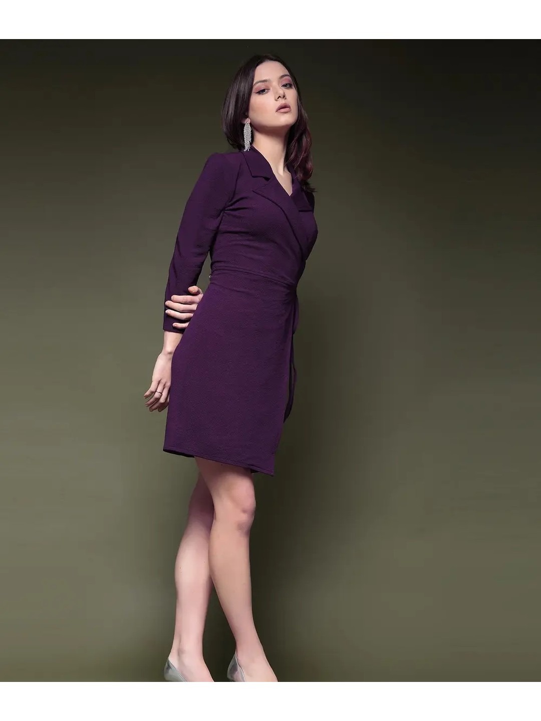Product Name: Selvia Purple Wrap Blazer Dress for Women