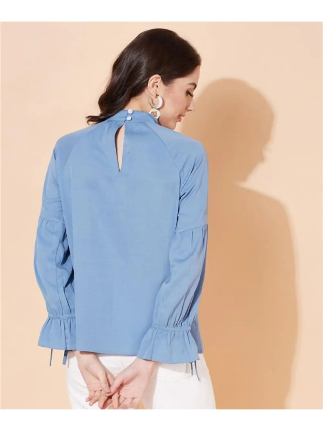 Product Name: Selvia Sky Blue High Neck Ruffle Top for Women