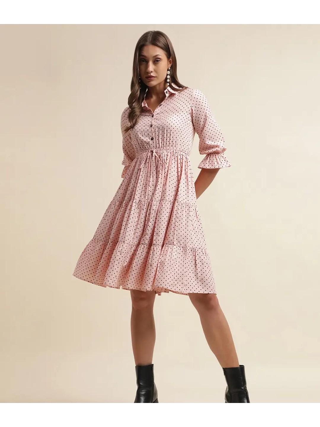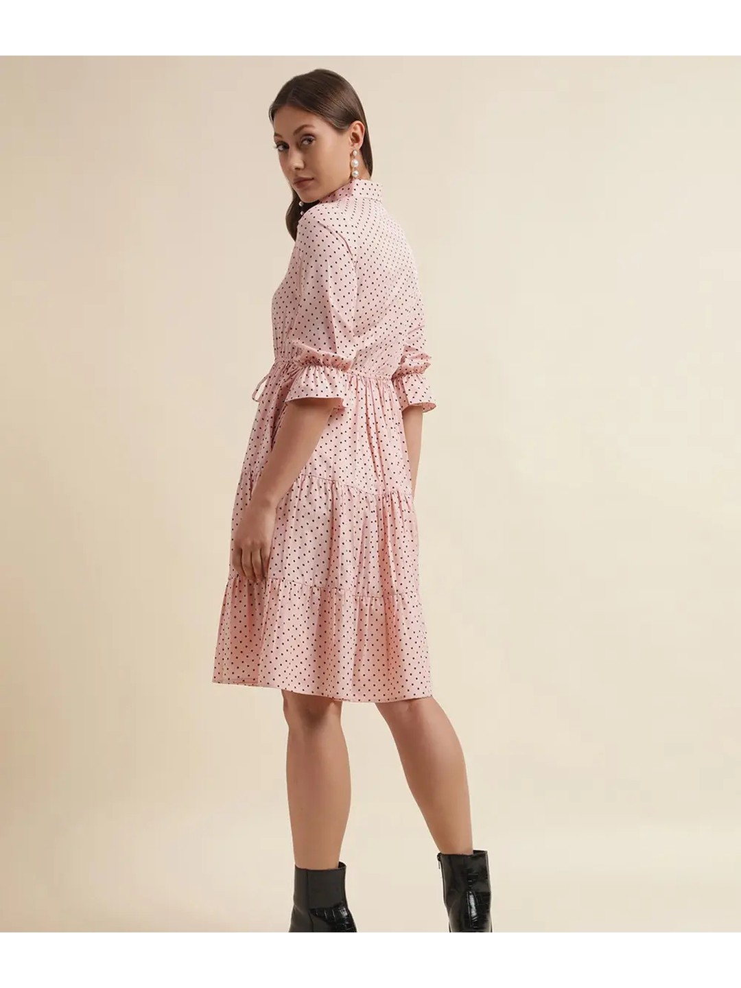 Product Name: Selvia White Polka Dot Tiered Shirt Dress for Women