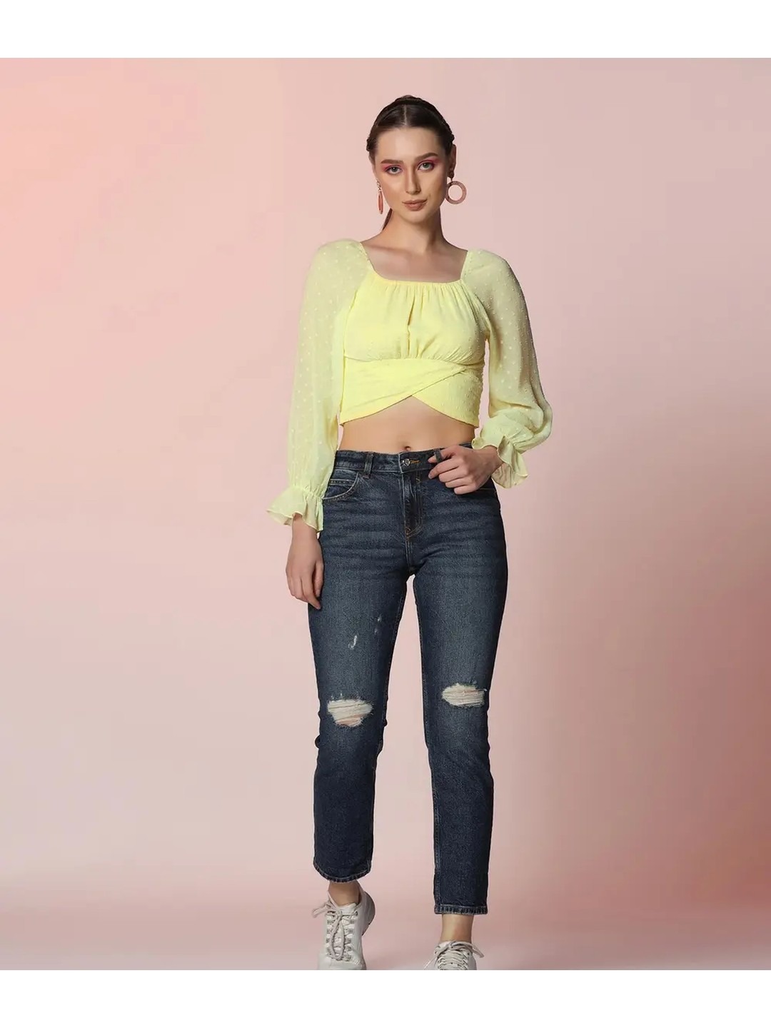Product Name: Selvia Yellow Chiffon Crop Top for Women