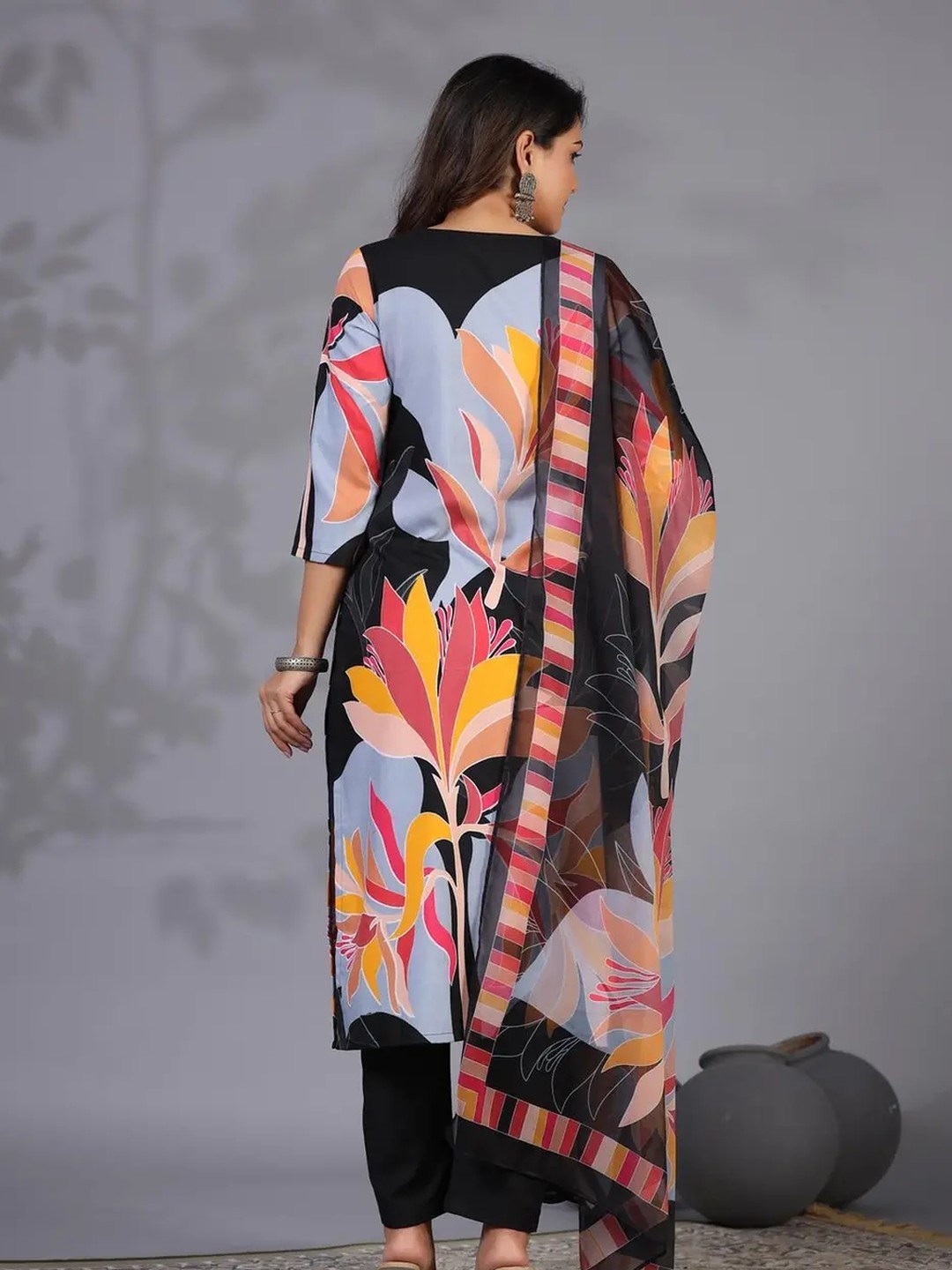 Product Name: Shri Ram Black Floral Kurta Set for Women