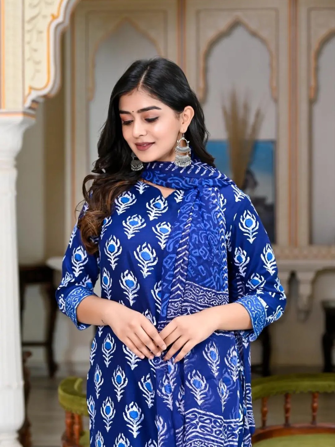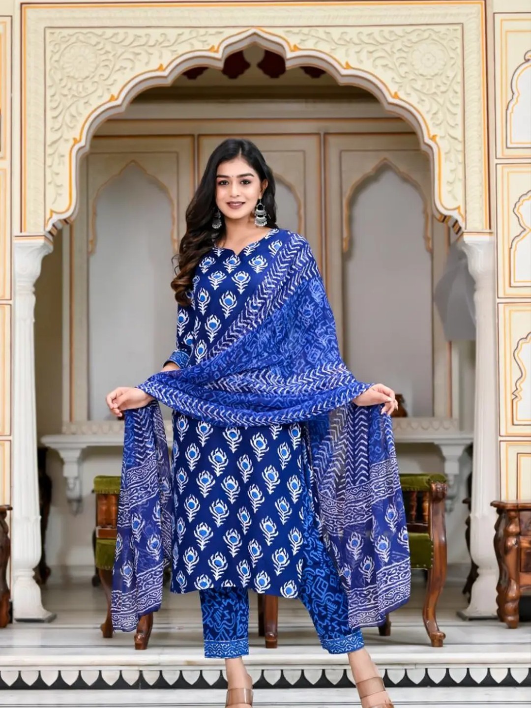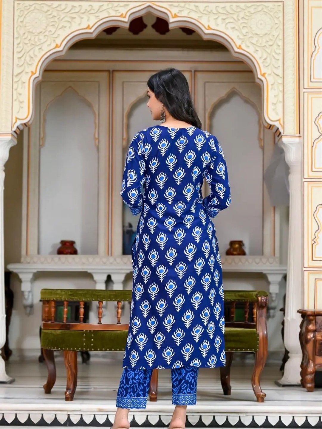 Product Name: Shri Ram Blue Ethnic Printed Kurta Set for Women
