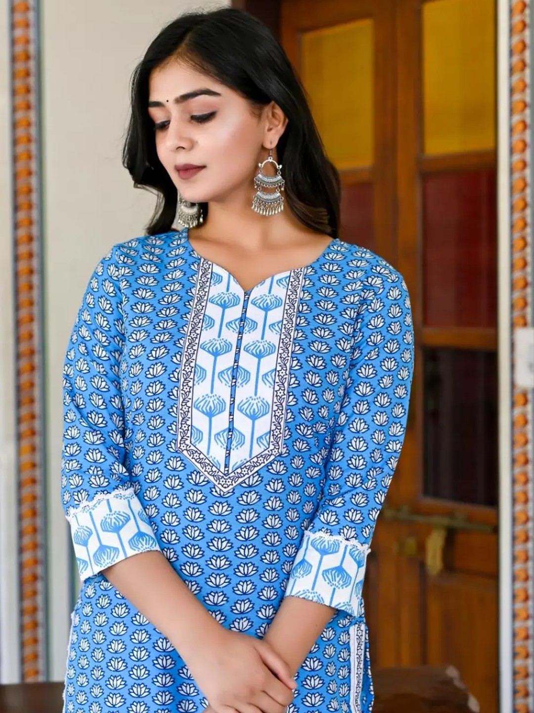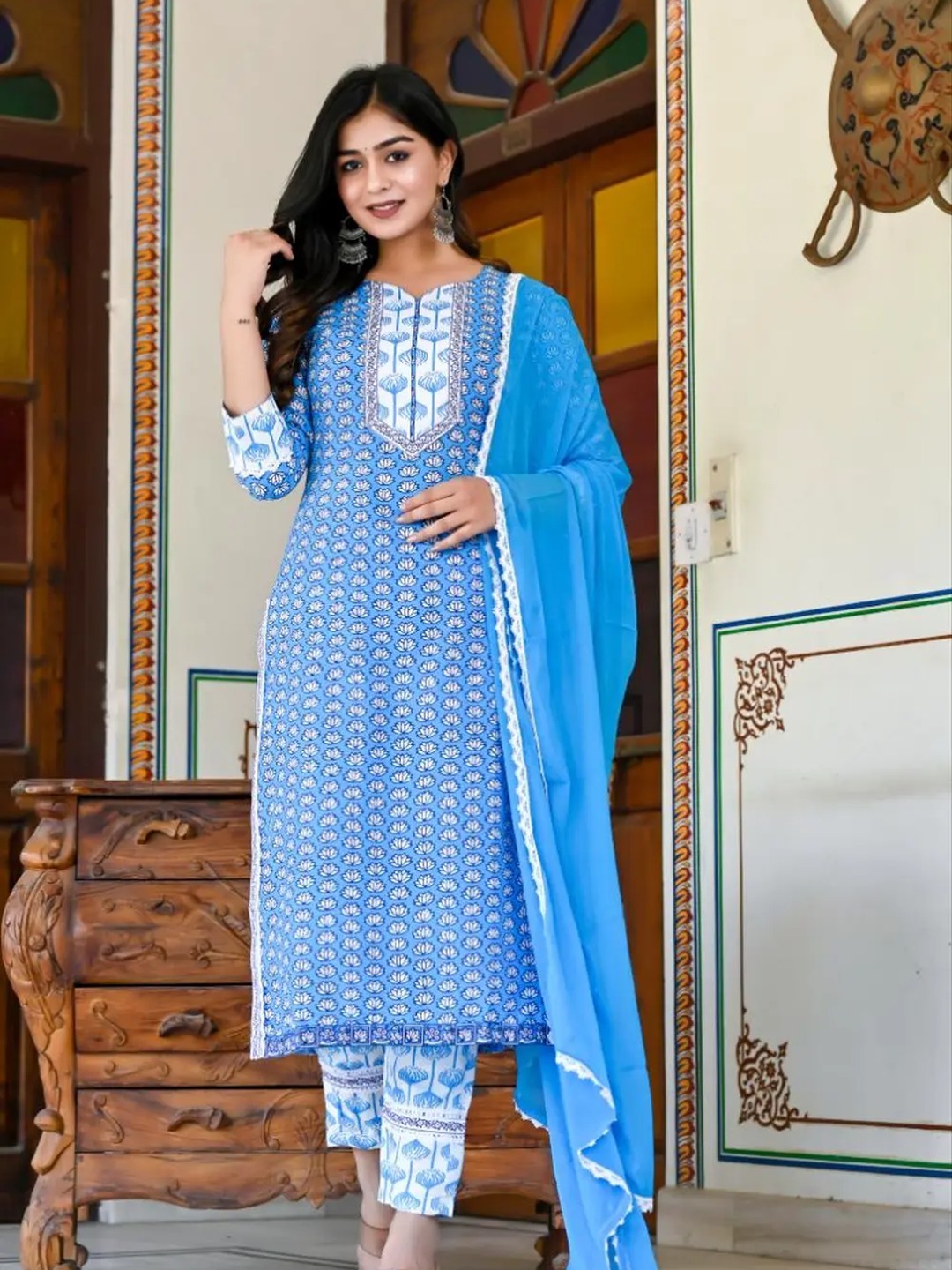 Product Name: Shri Ram Blue Ethnic Printed Kurta Set for Women