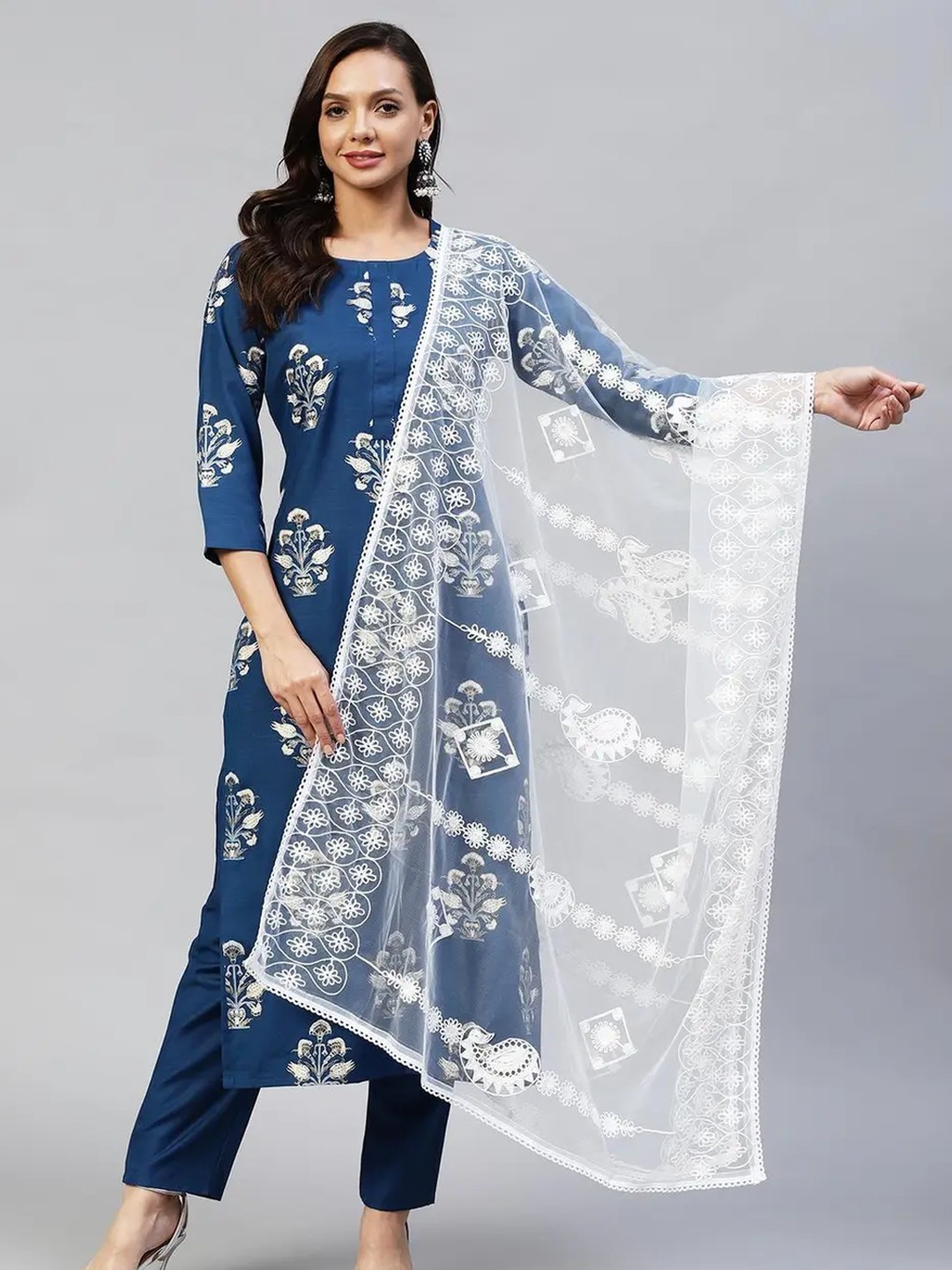 Product Name: Shri Ram Blue Floral Kurta Set for Women
