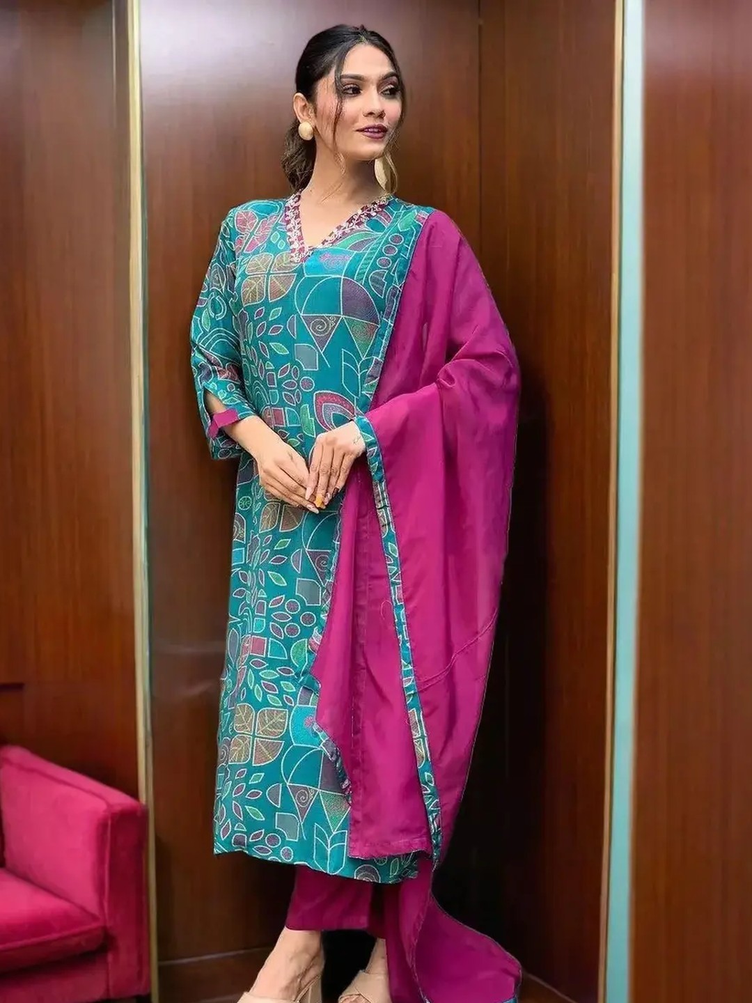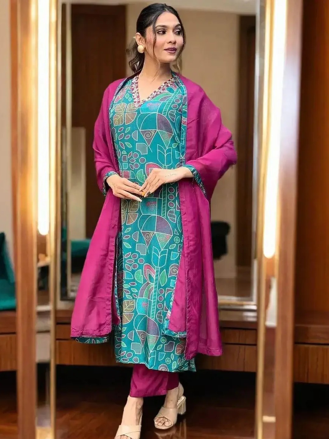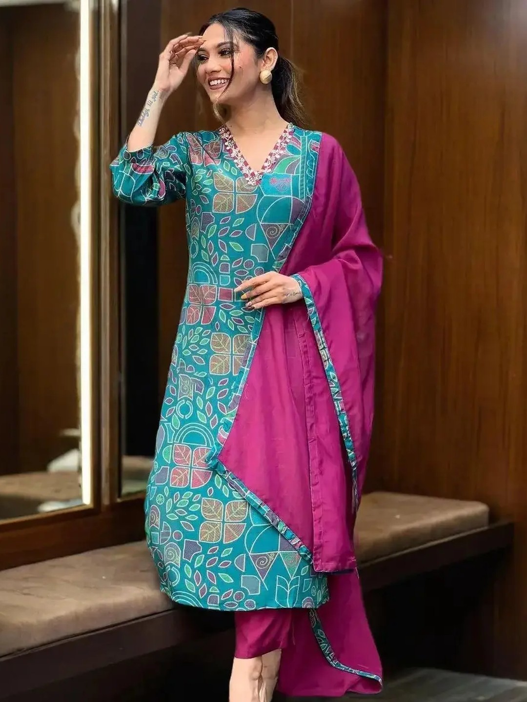 Product Name: Shri Ram Blue Printed Straight Kurta Set for Women
