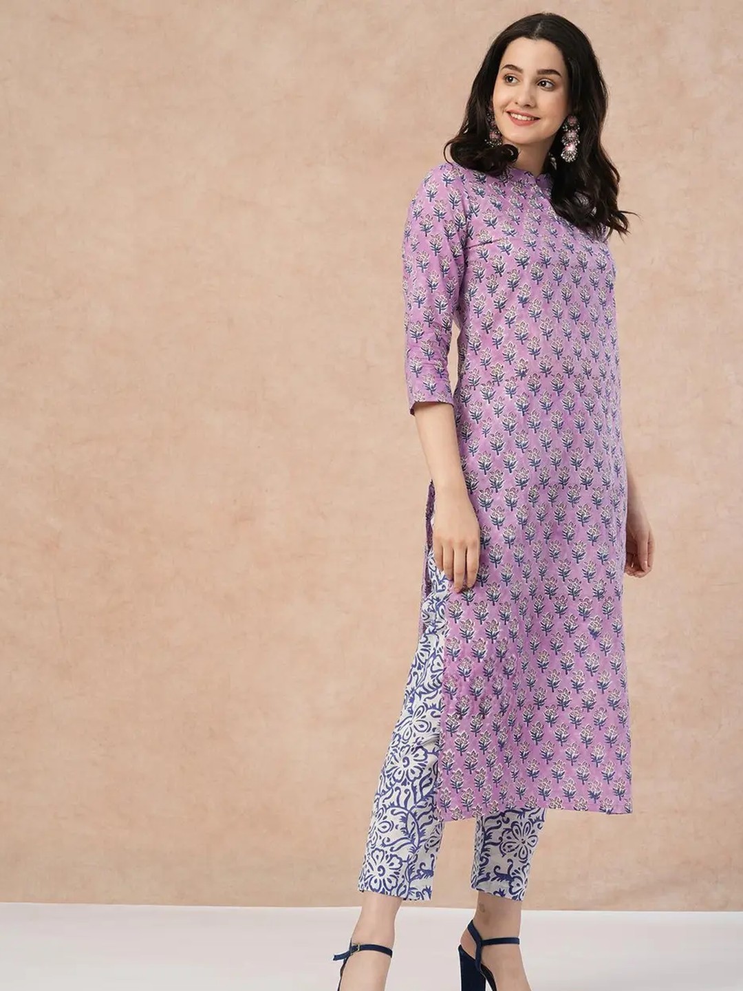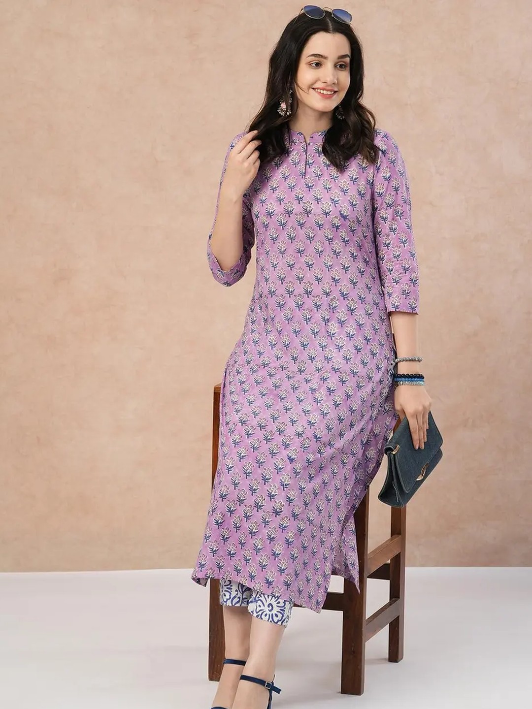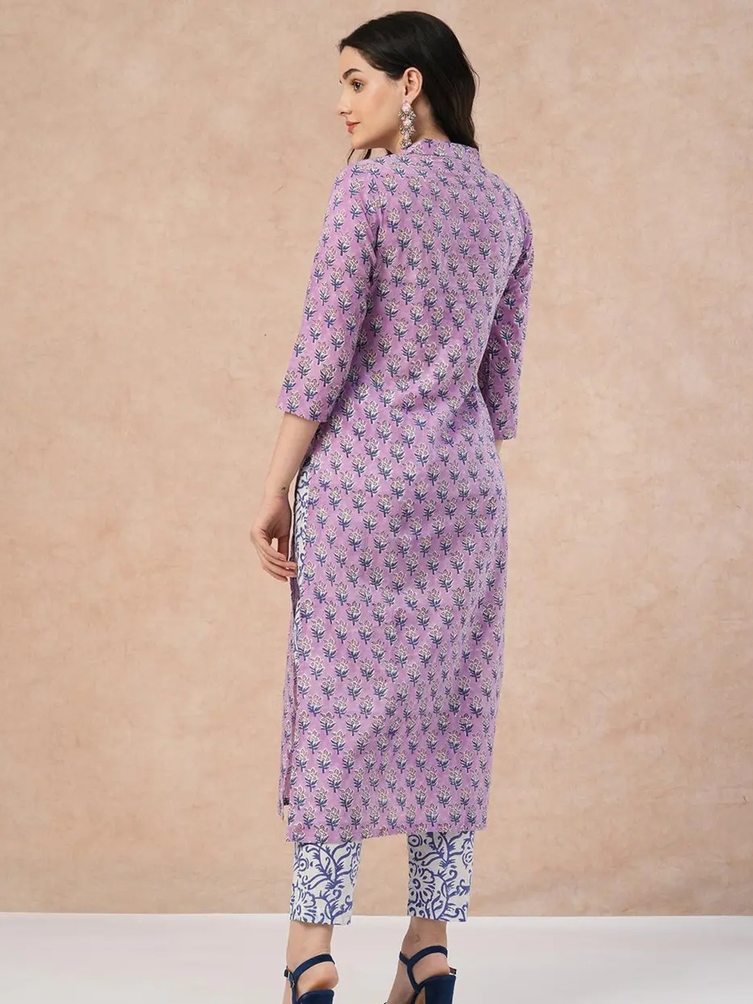 Product Name: Shri Ram Lavender Ethnic Printed Kurta Set for Women