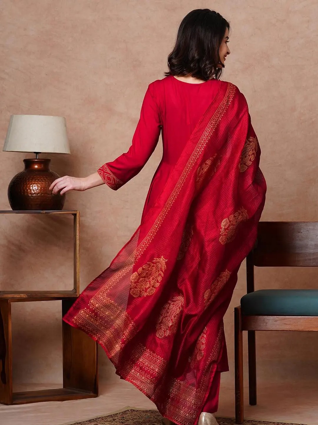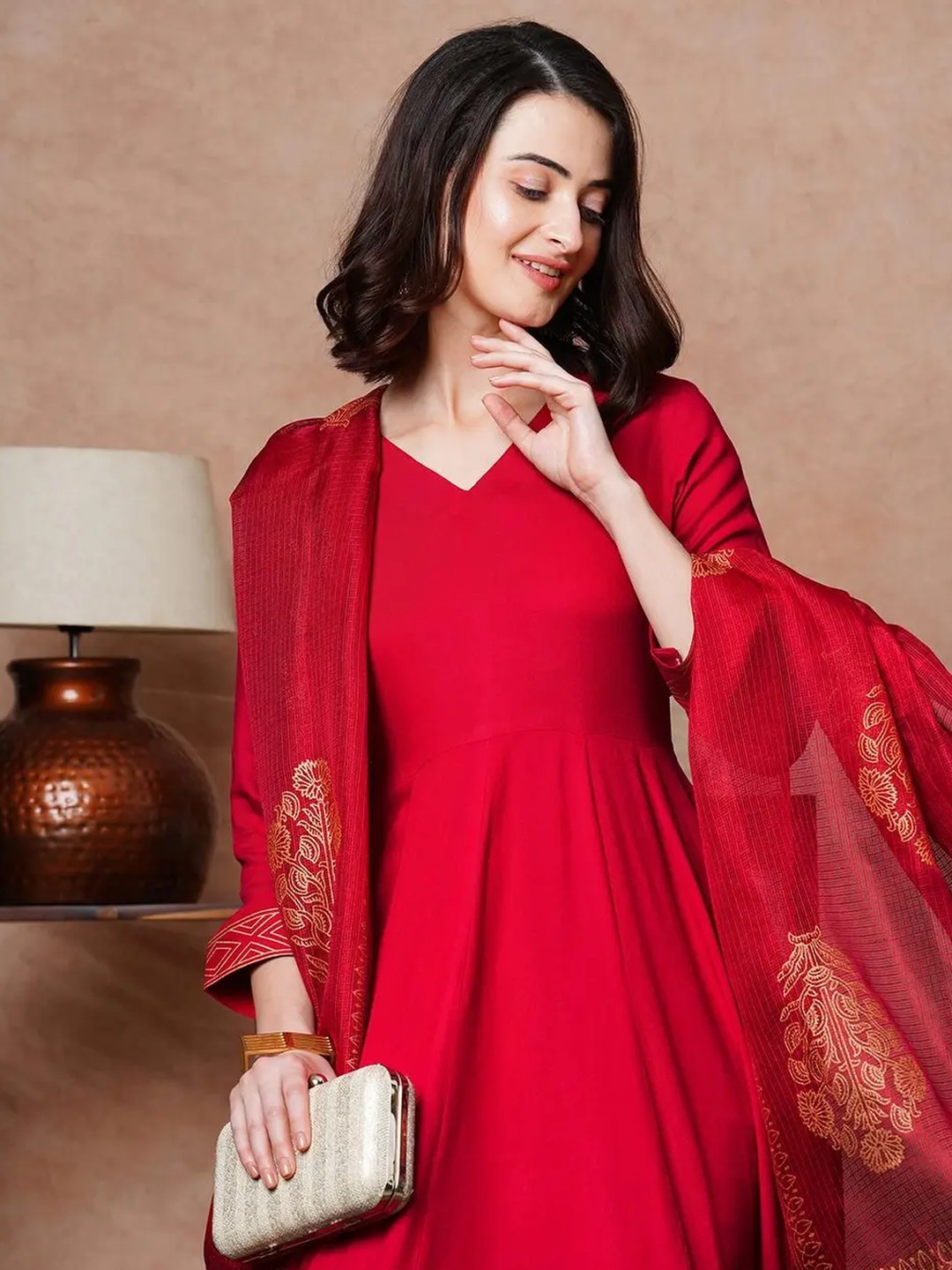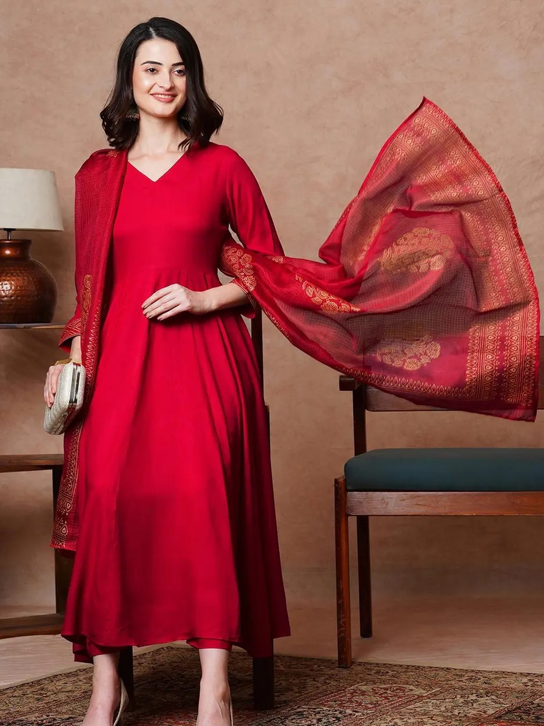 Product Name: Shri Ram Maroon Anarkali Kurta Set for Women