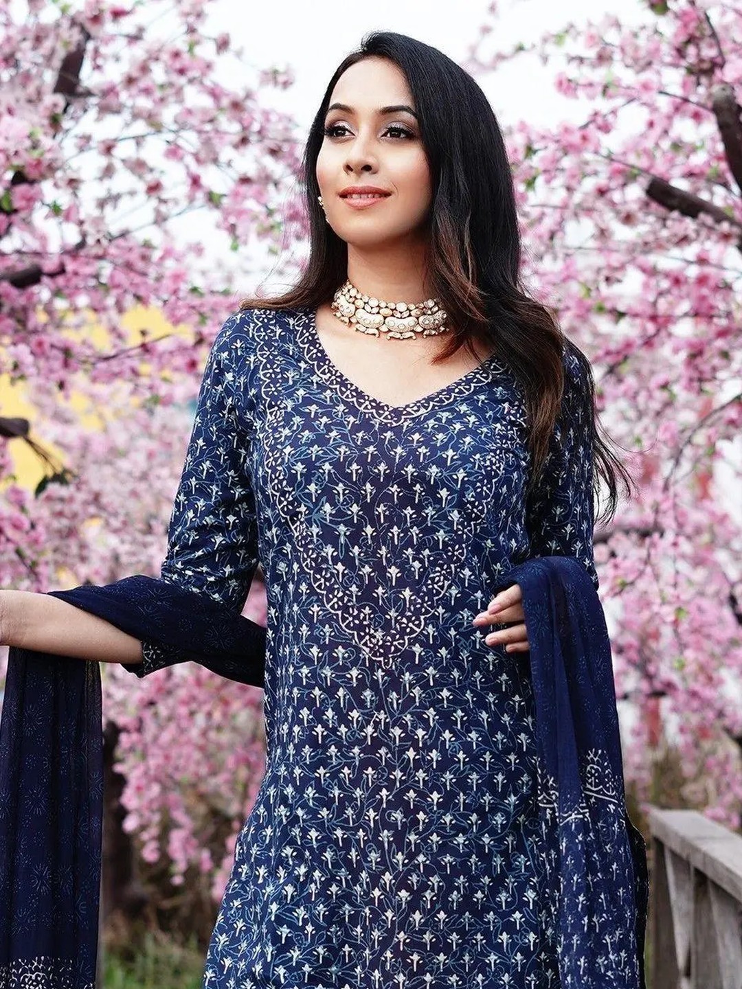 Product Name: Shri Ram Navy Blue Embroidered Kurta Set for Women