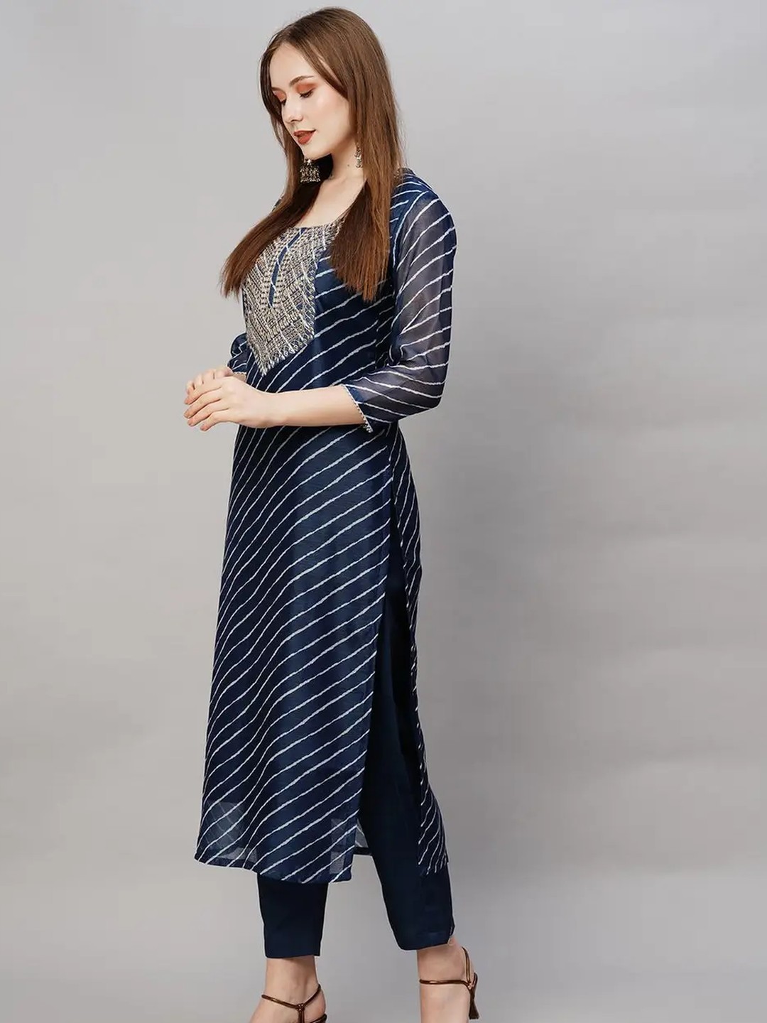 Product Name: Shri Ram Navy Blue Sequin Kurta Set for Women