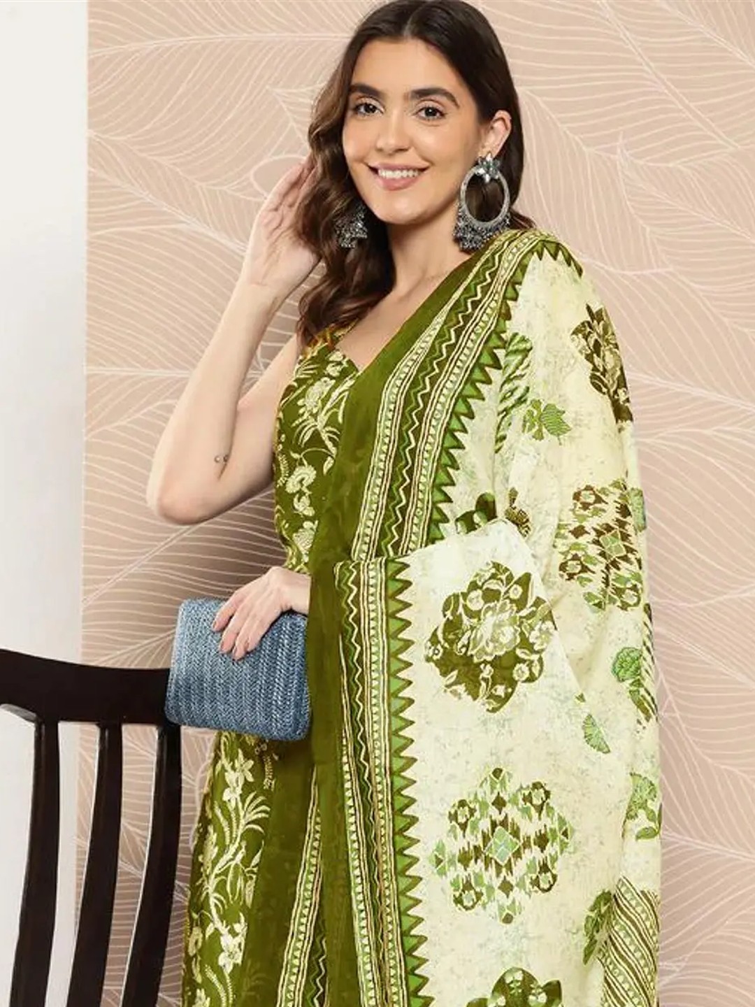 Product Name: Shri Ram Olive Green Ethnic Printed Kurta Set for Women