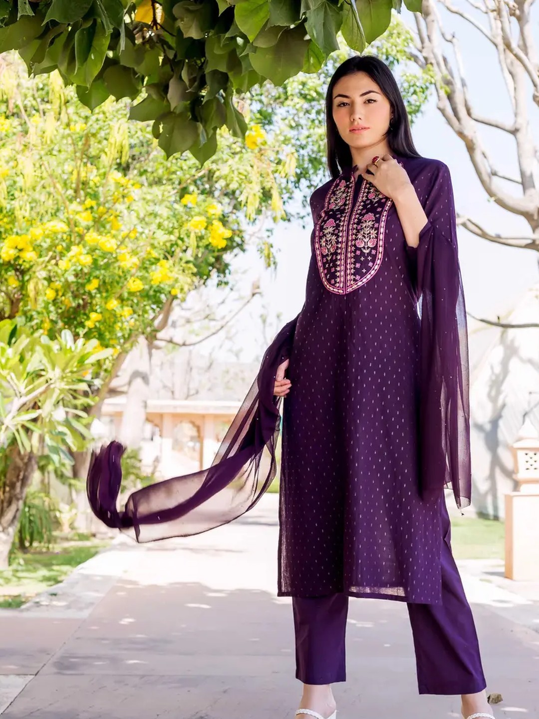 Product Name: Shri Ram Purple Embellished Kurta Set for Women