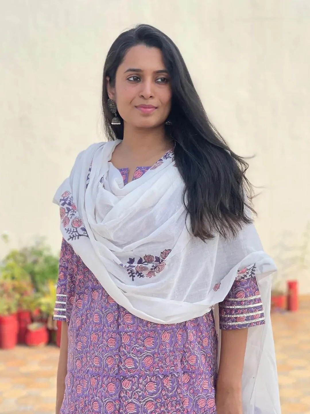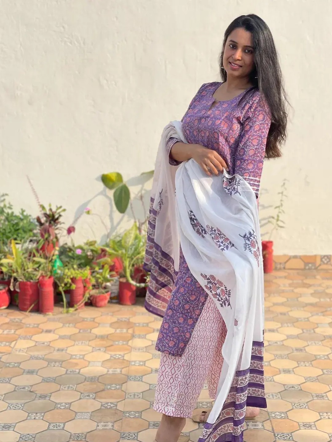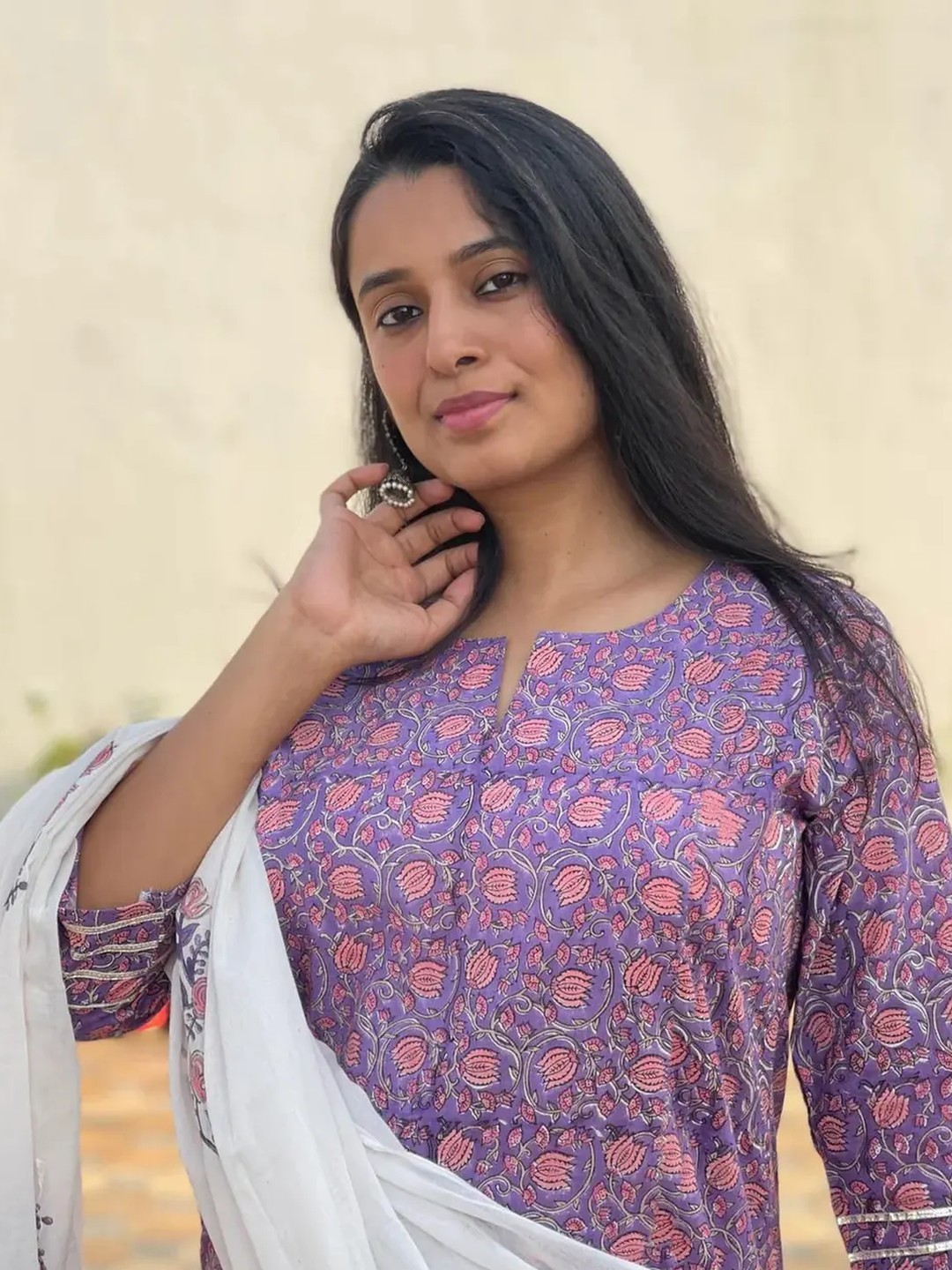Product Name: Shri Ram Purple Ethnic Printed Kurta Set for Women