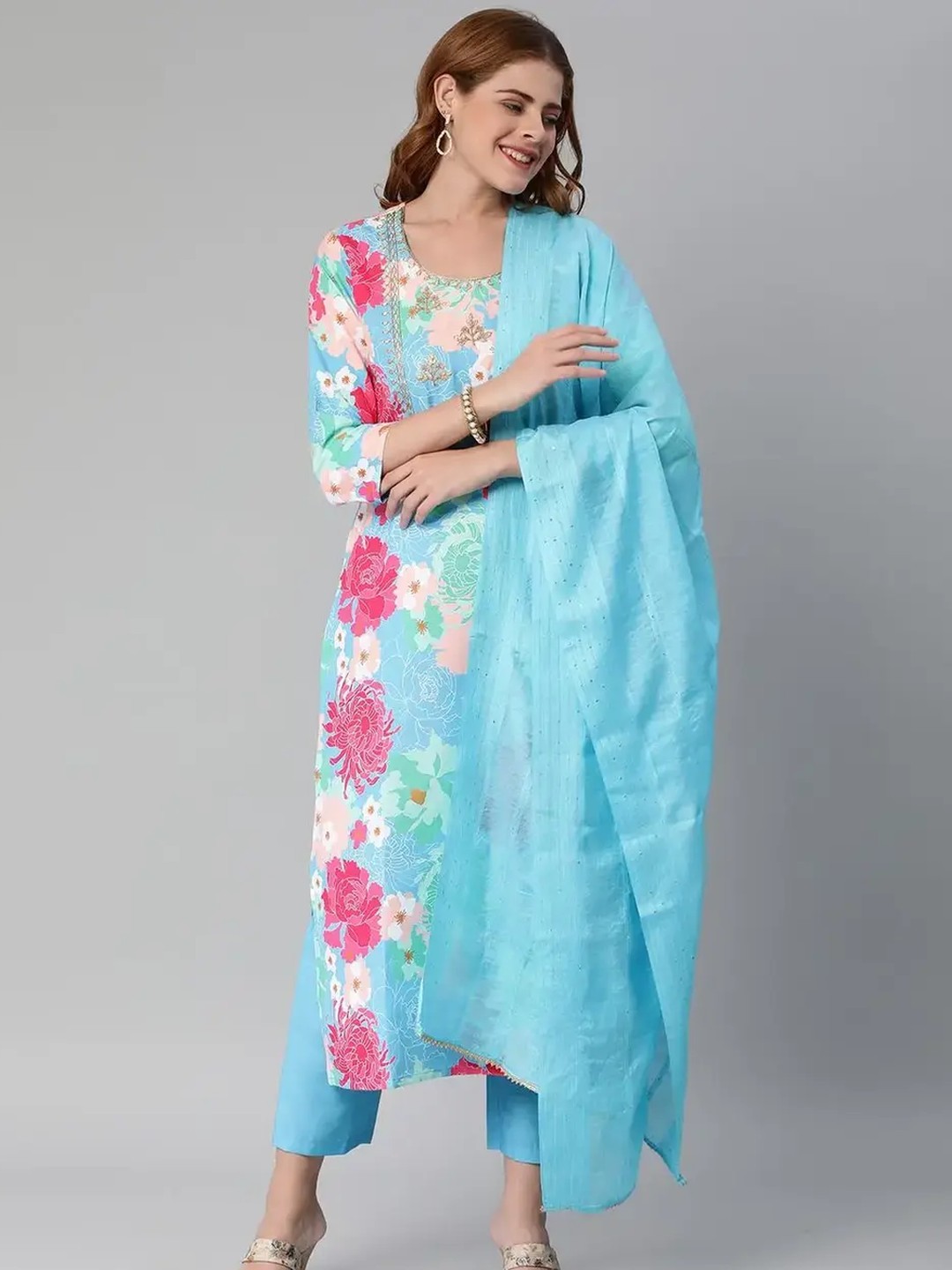 Product Name: Shri Ram Sky Blue Floral Kurta Set for Women