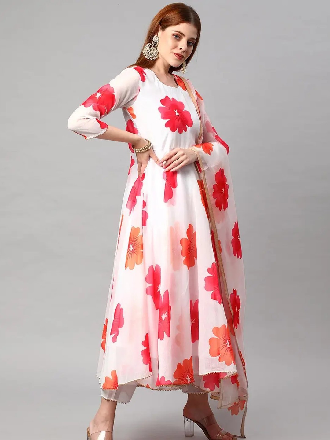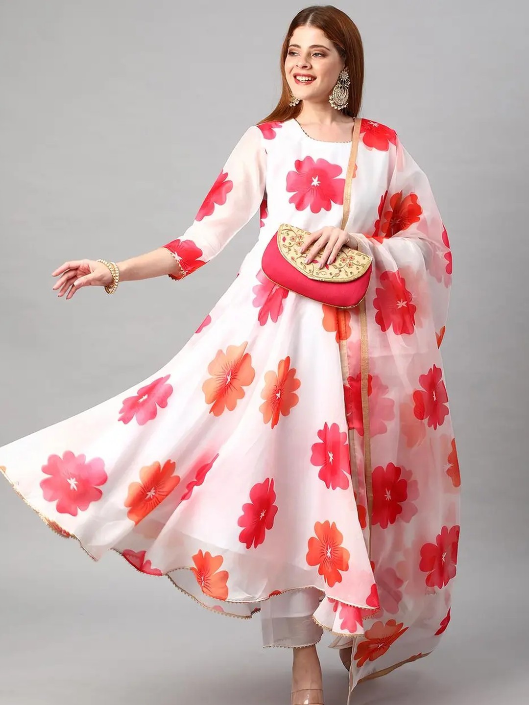 Product Name: Shri Ram White Floral Anarkali Kurta Set for Women